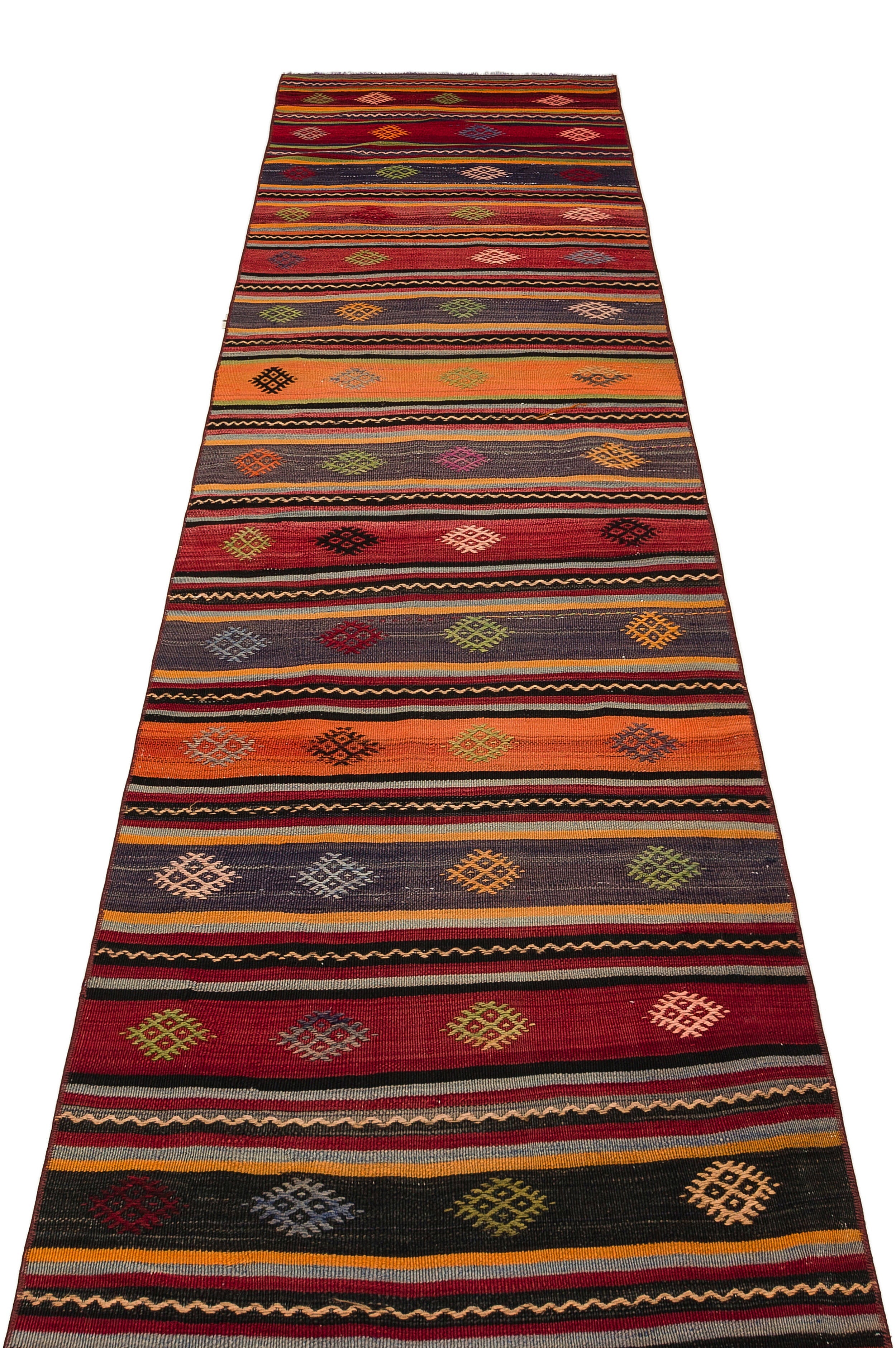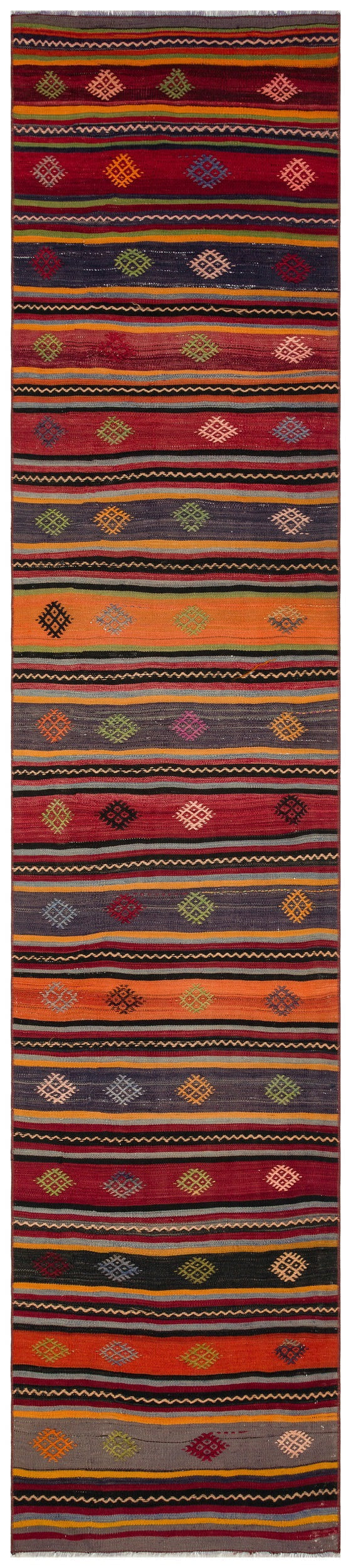 Girit Red Striped Wool Handmade Area Rug 2'8" x 11'10"