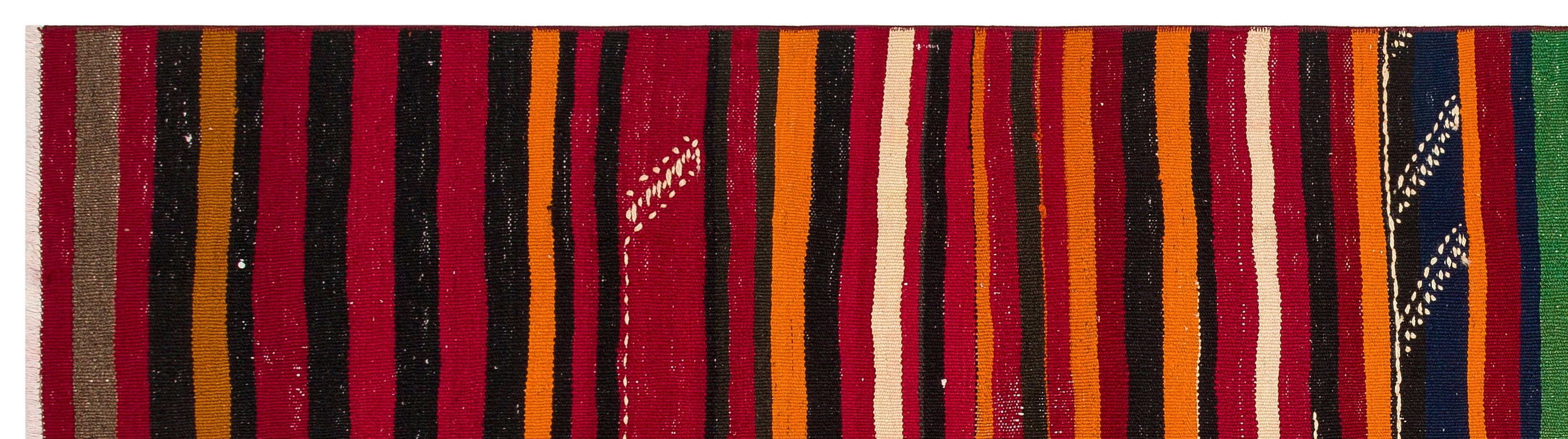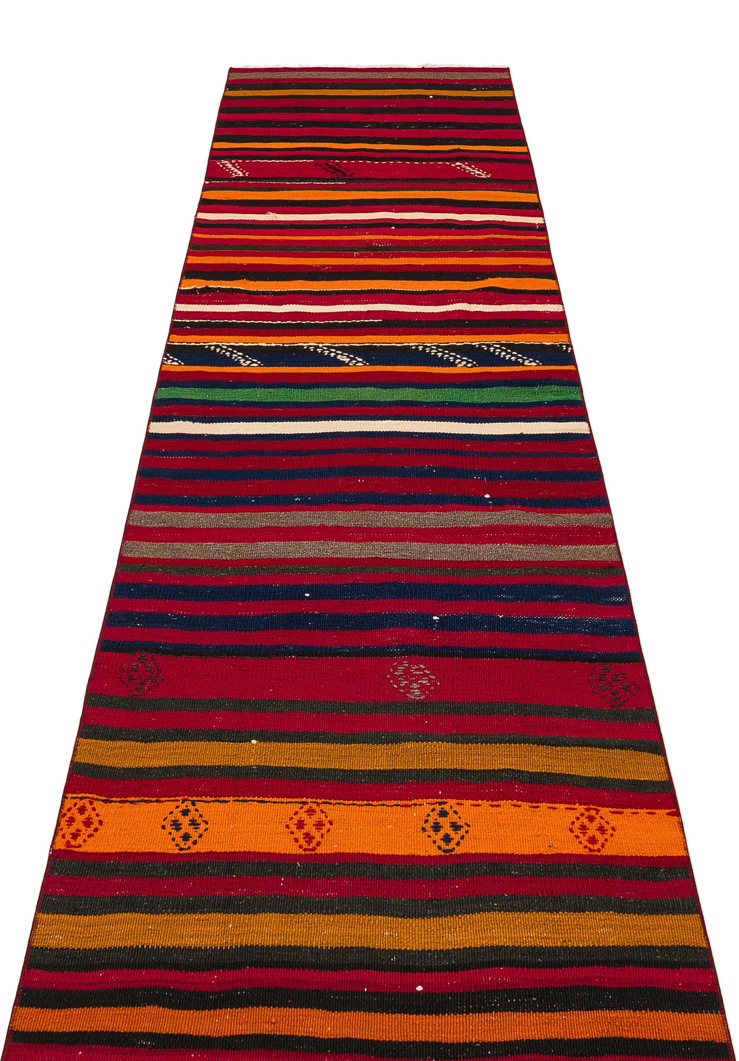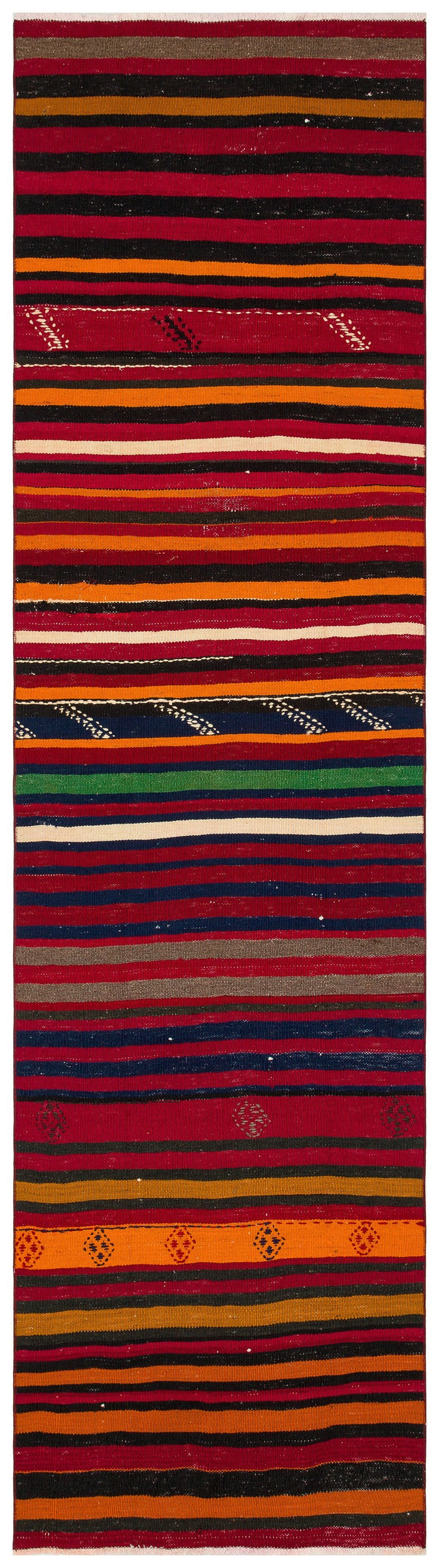 Girit Red Striped Wool Handmade Area Rug 2'8" x 9'10"