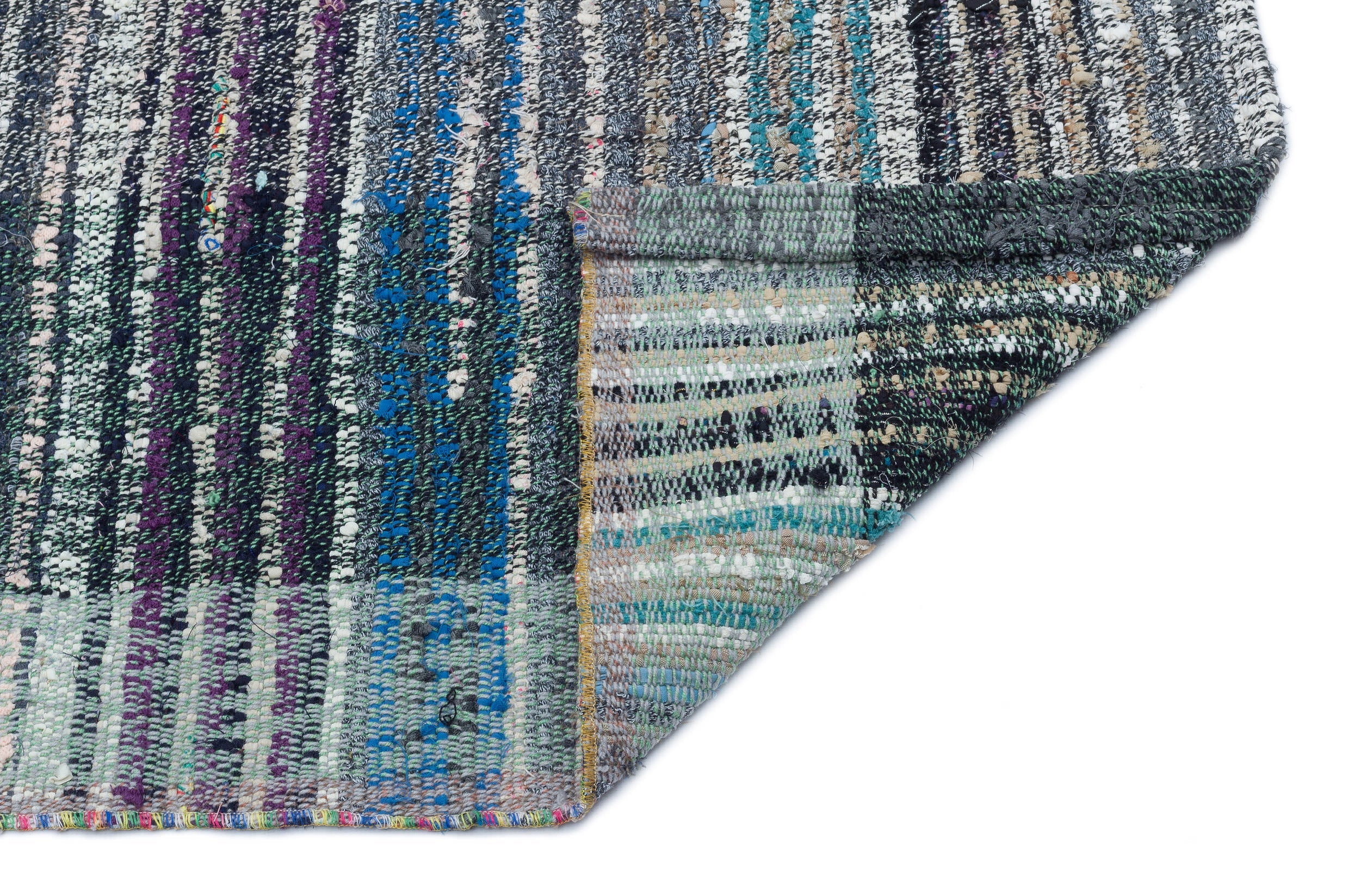 Girit Turquoise Striped Wool Handmade Area Rug 5'10" x 4'9"