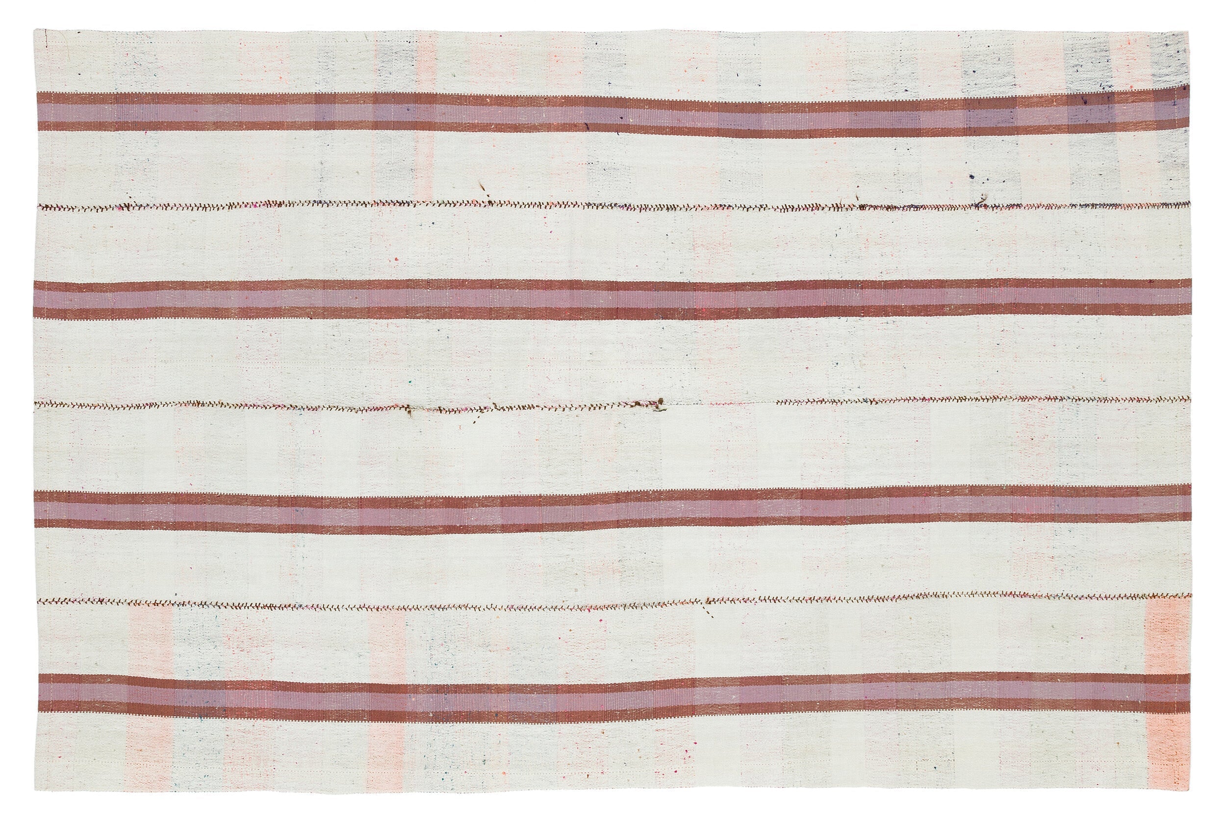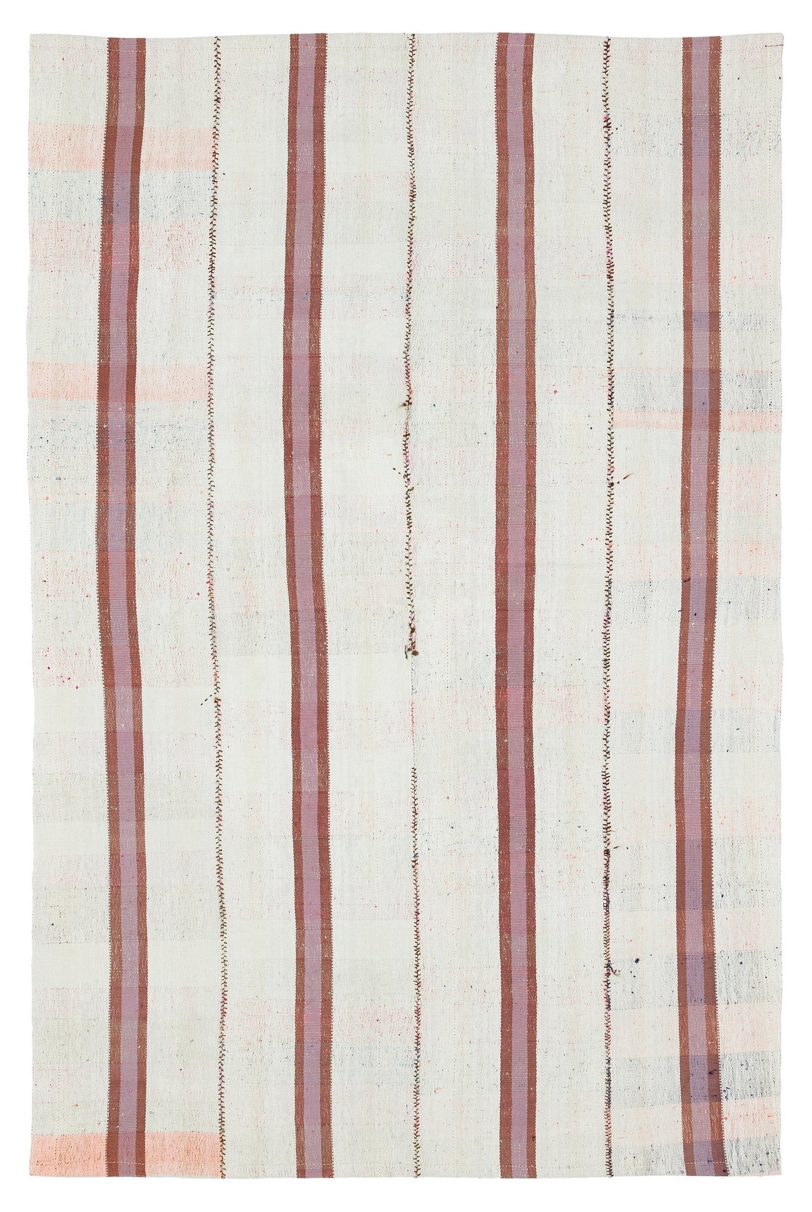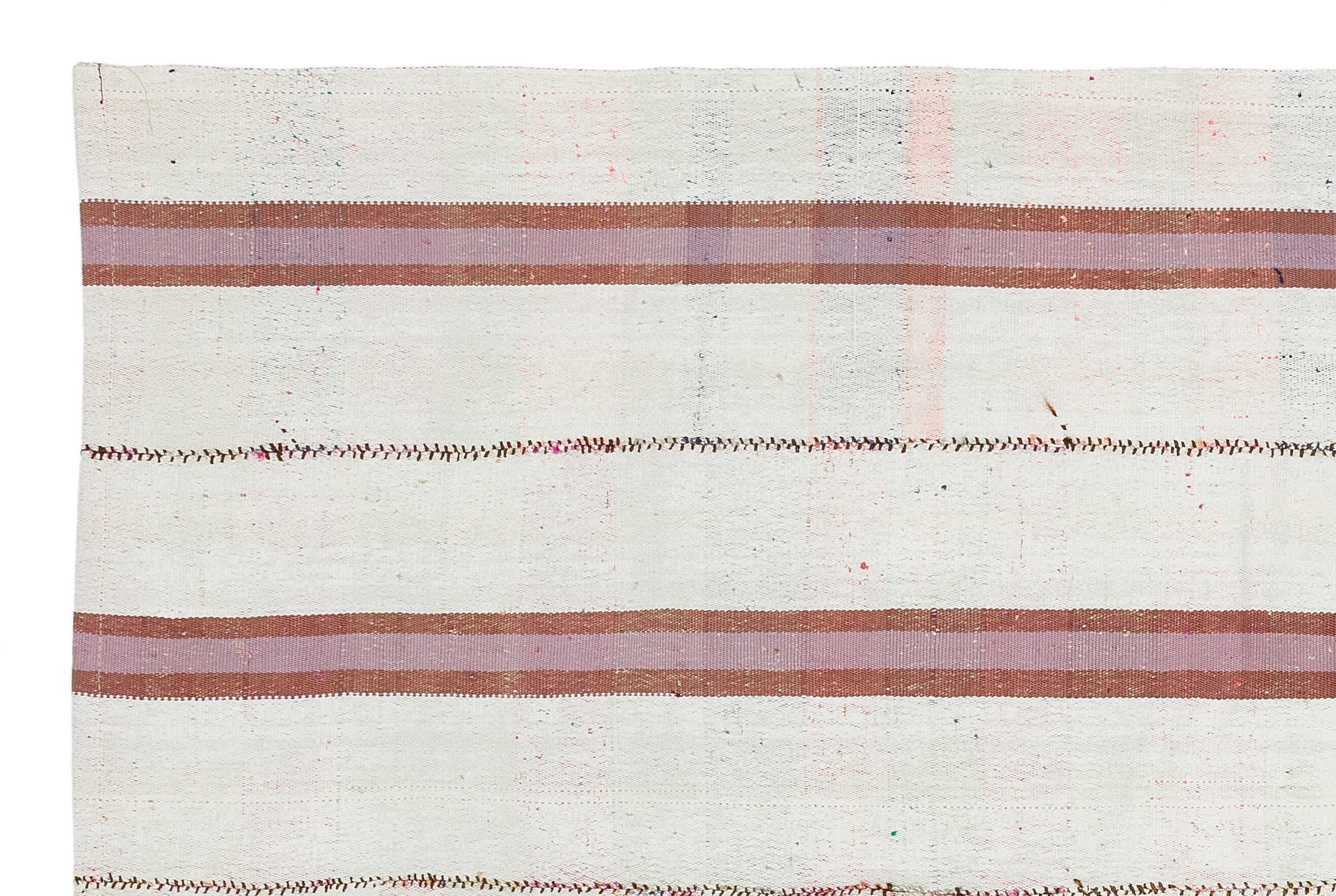 Girit White Striped Wool Handmade Area Rug 4'11" x 7'6"