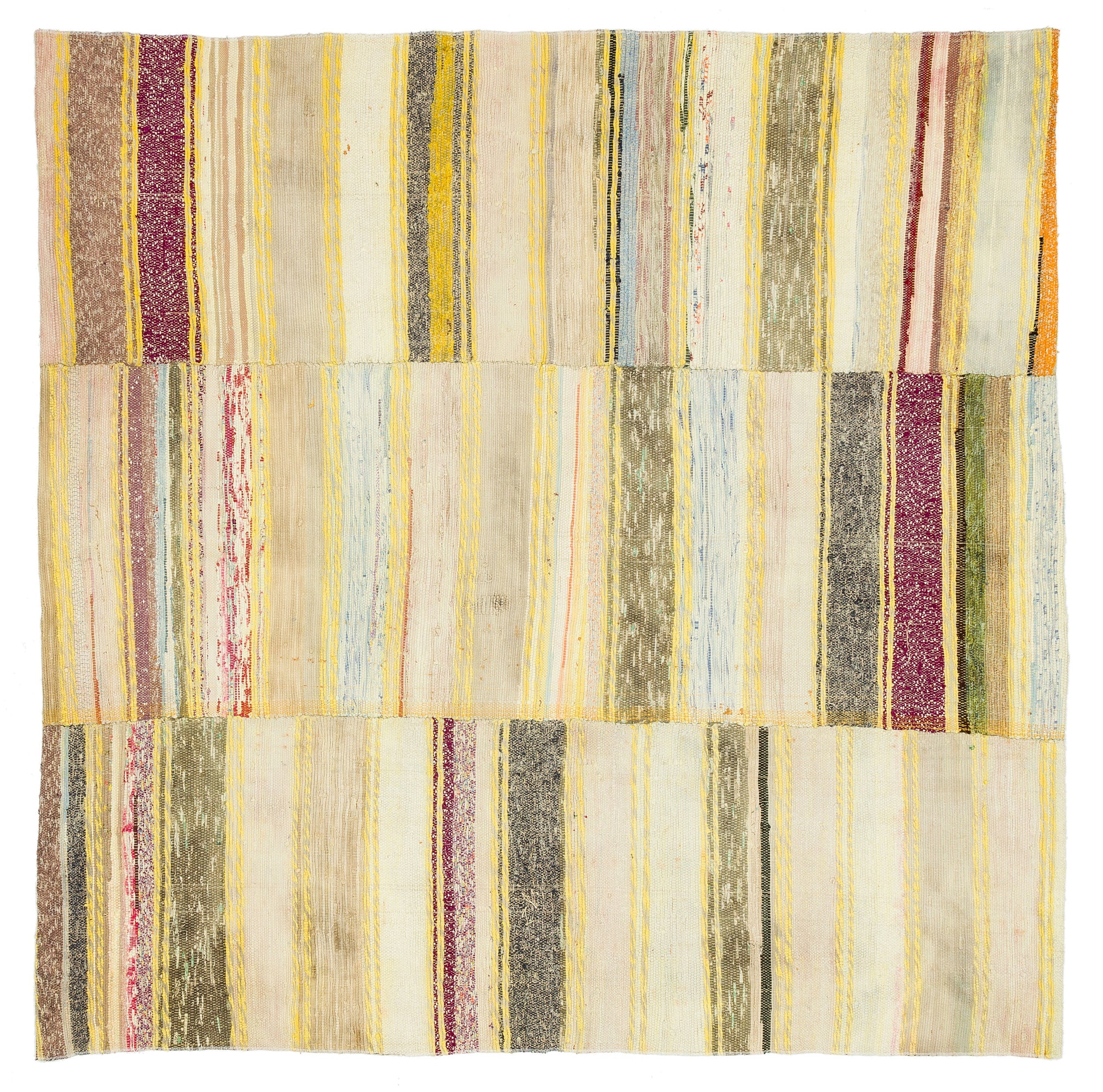 Girit Yellow Striped Wool Handmade Area Rug 5'6" x 5'6"