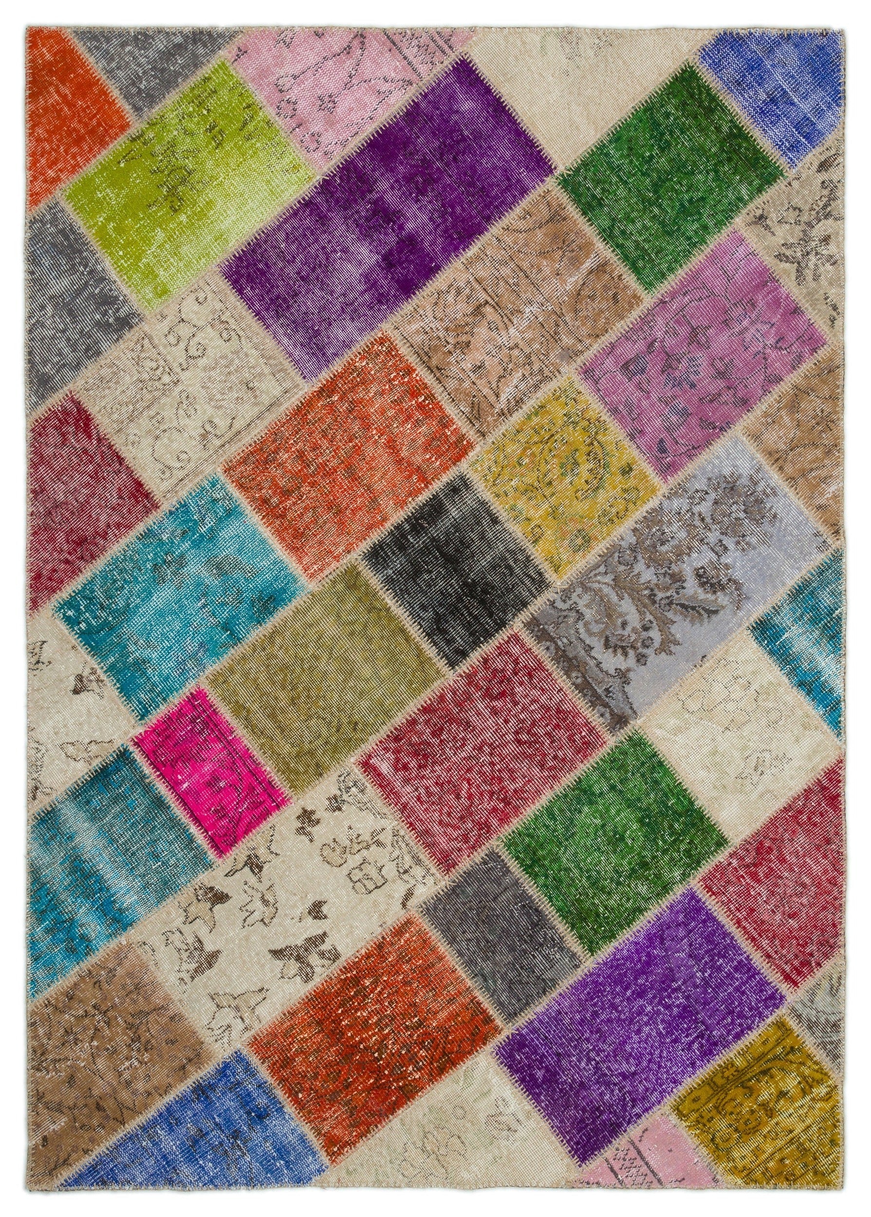 Iskece 21009 Beige Patchwork Wool Handmade Area Rug 5'4" x 7'6"