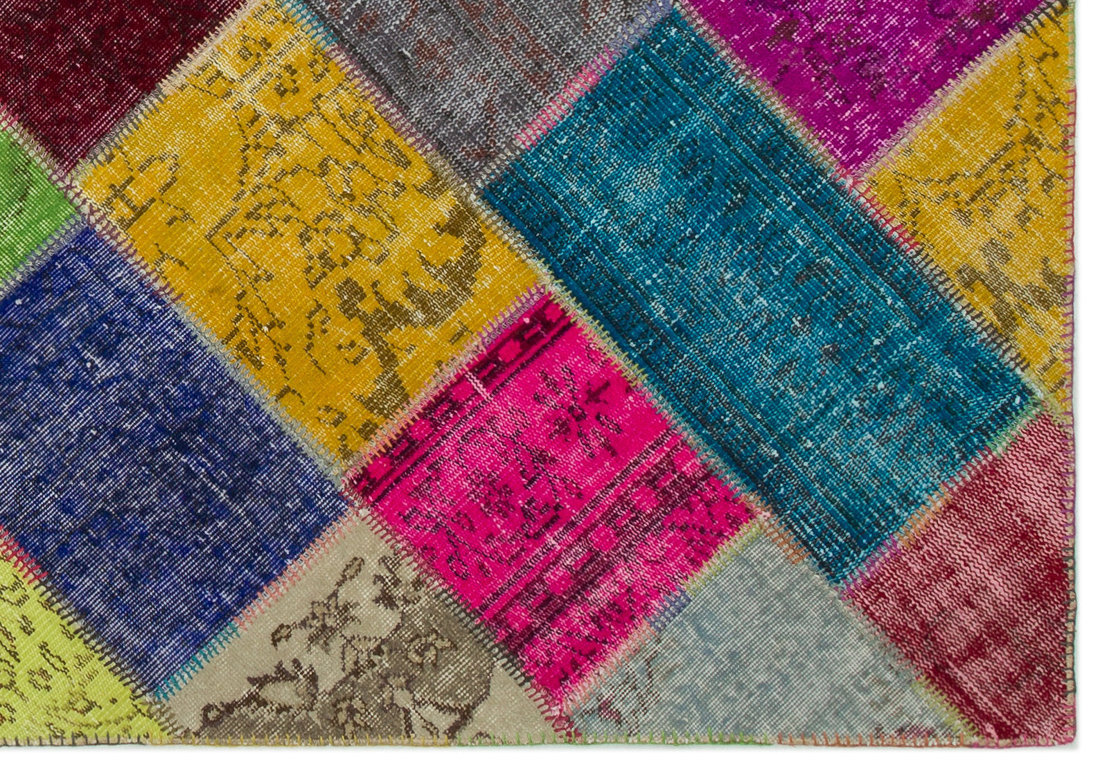 Iskece 21605 Beige Patchwork Wool Handmade Area Rug 5'3" x 7'8"