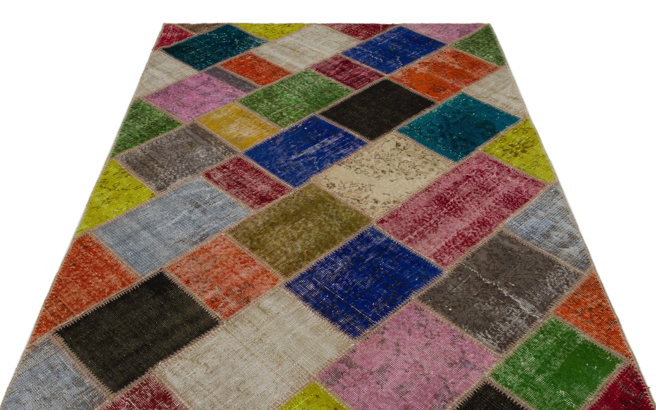 Iskece 21650 Beige Patchwork Wool Handmade Area Rug 5'3" x 7'8"