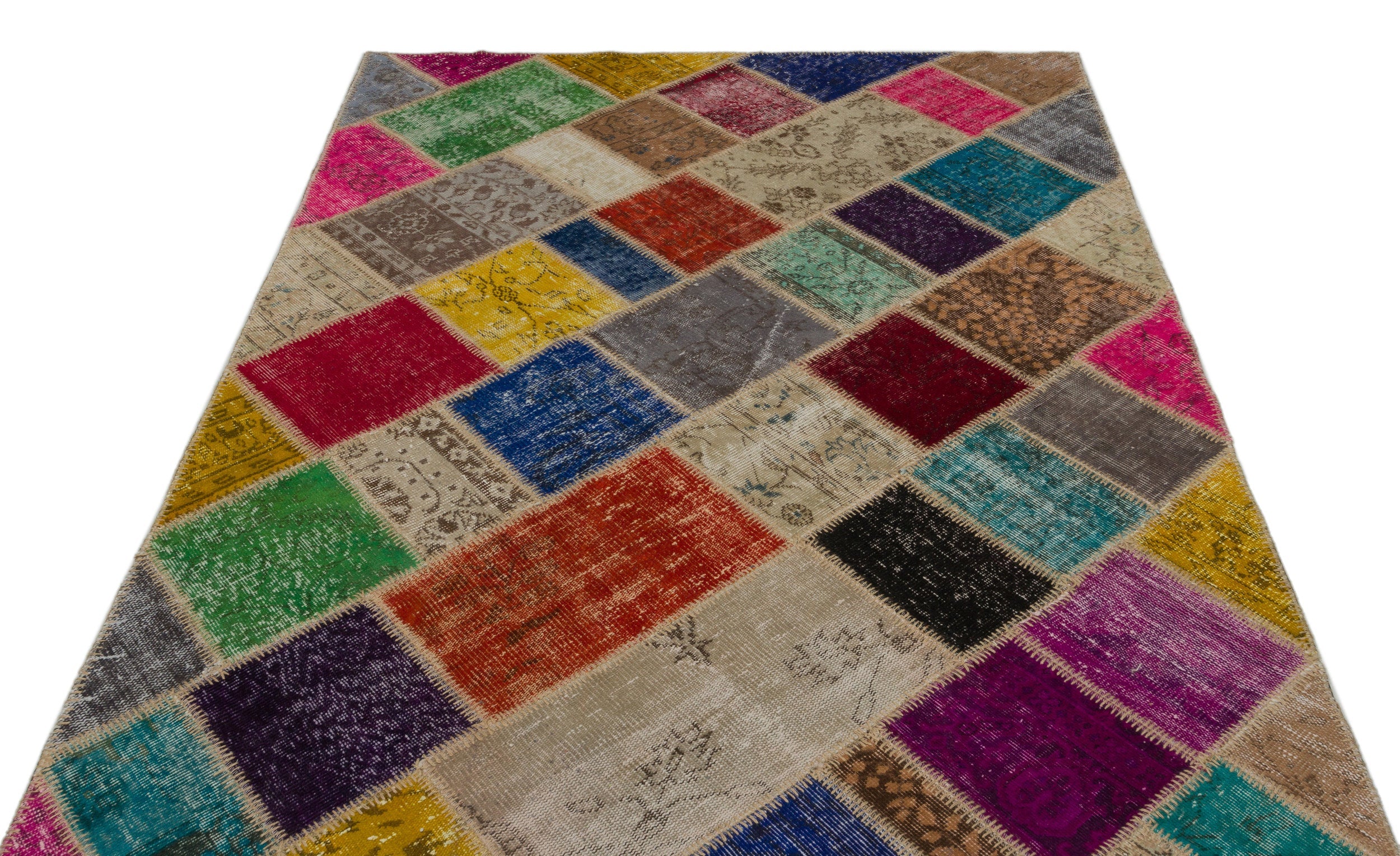 Iskece 21671 Beige Patchwork Wool Handmade Area Rug 5'3" x 7'8"