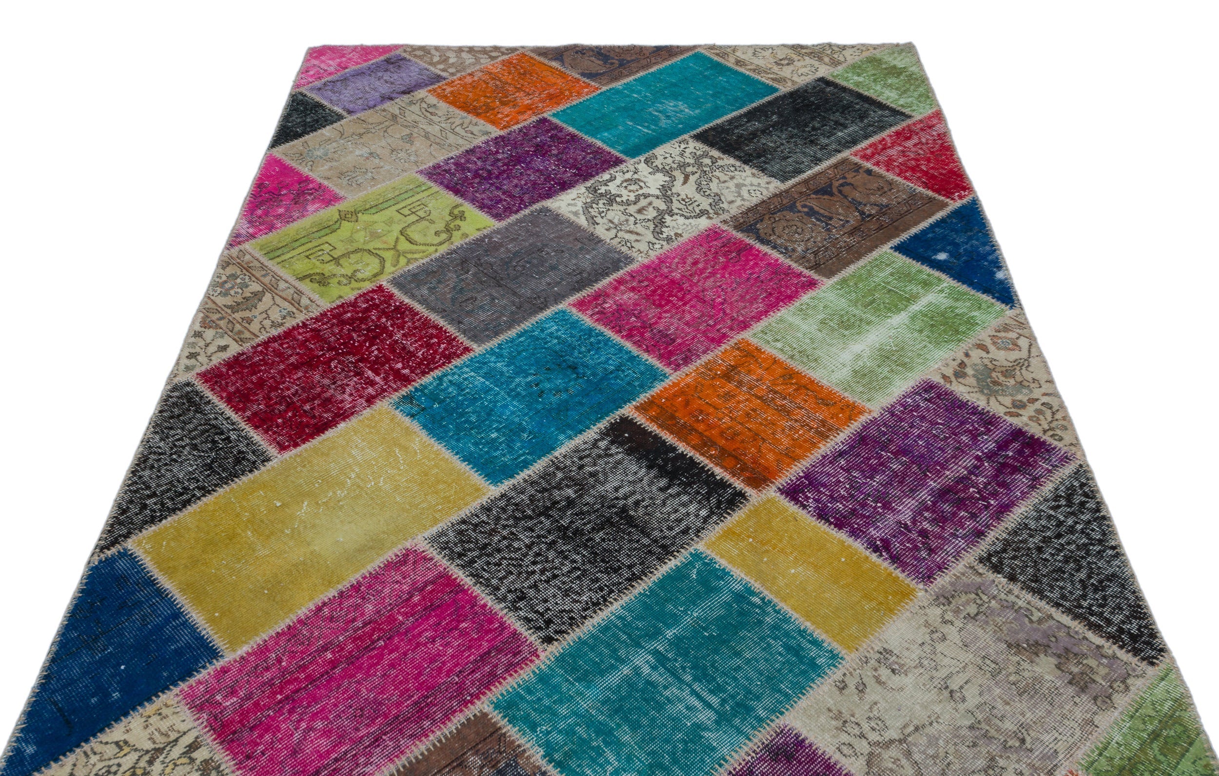 Iskece 22018 Beige Patchwork Wool Handmade Area Rug 5'3" x 7'7"