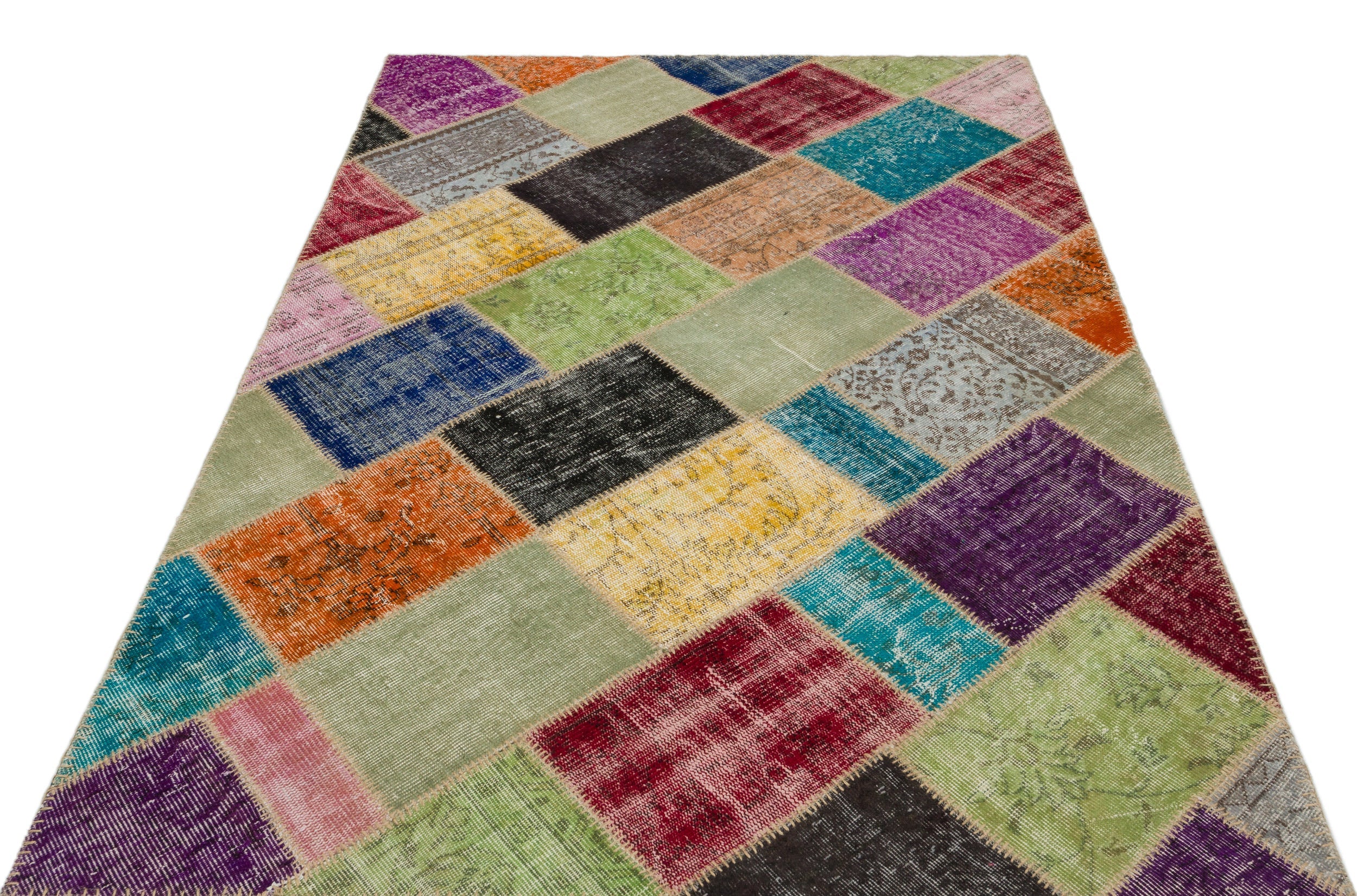 Iskece 22043 Beige Patchwork Wool Handmade Area Rug 5'3" x 7'7"