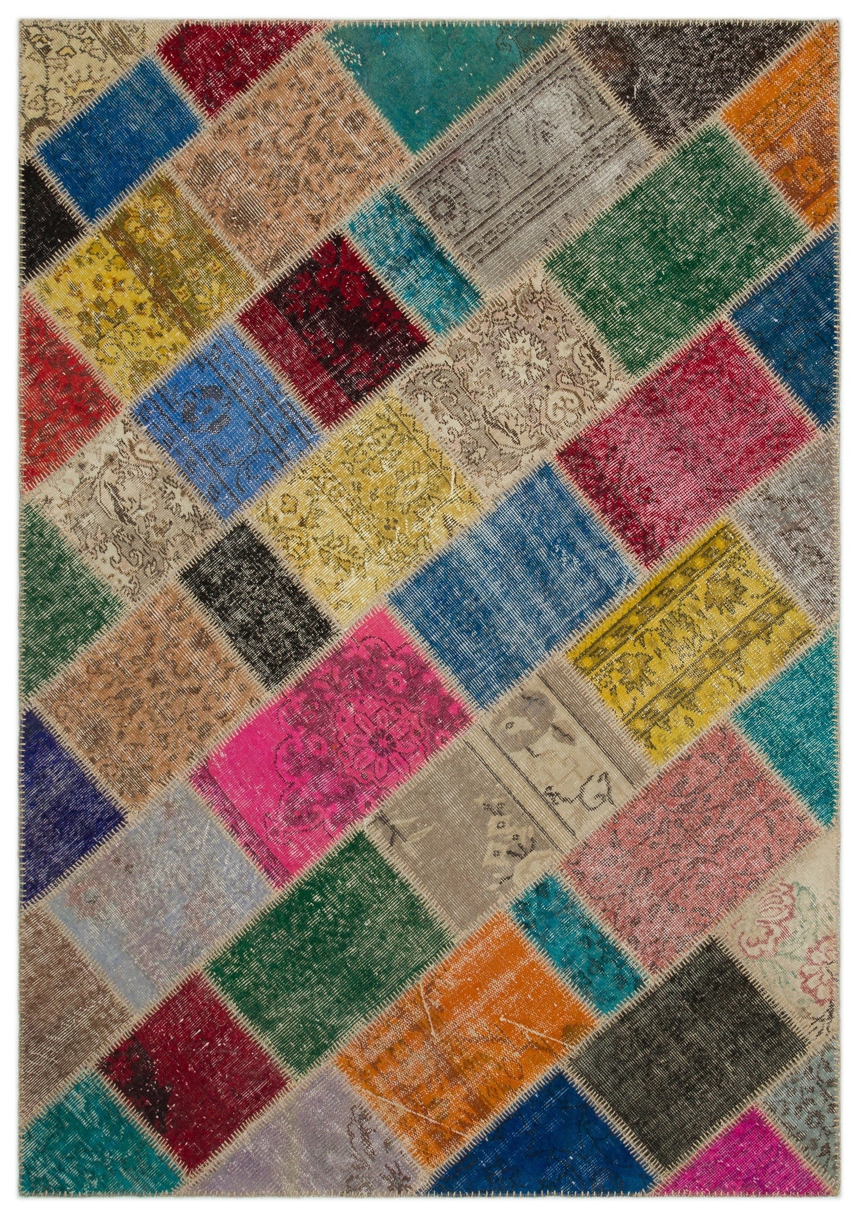 Iskece 22059 Beige Patchwork Wool Handmade Area Rug 5'3" x 7'7"