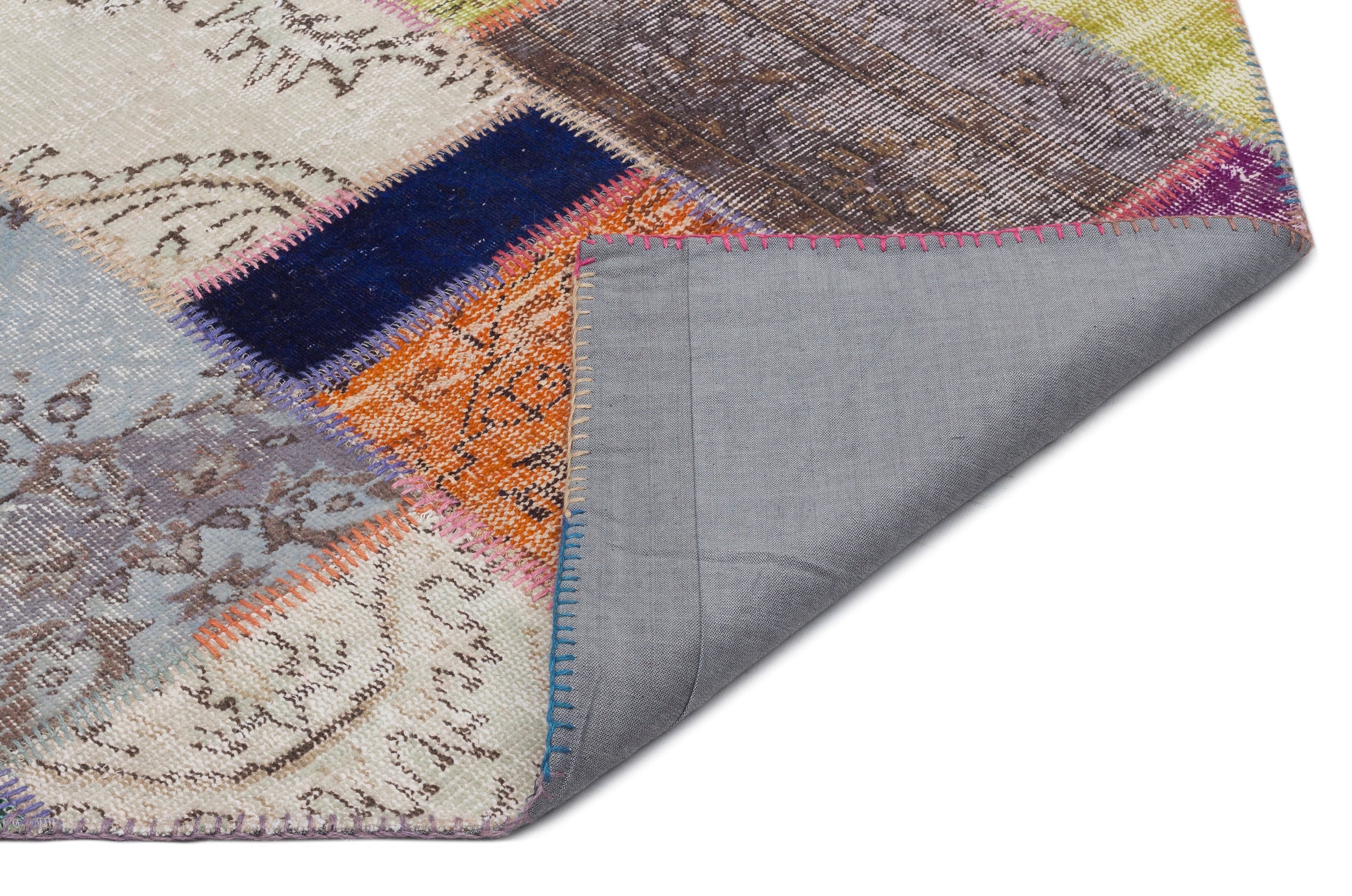 Iskece 22079 Beige Patchwork Wool Handmade Area Rug 5'3" x 7'7"