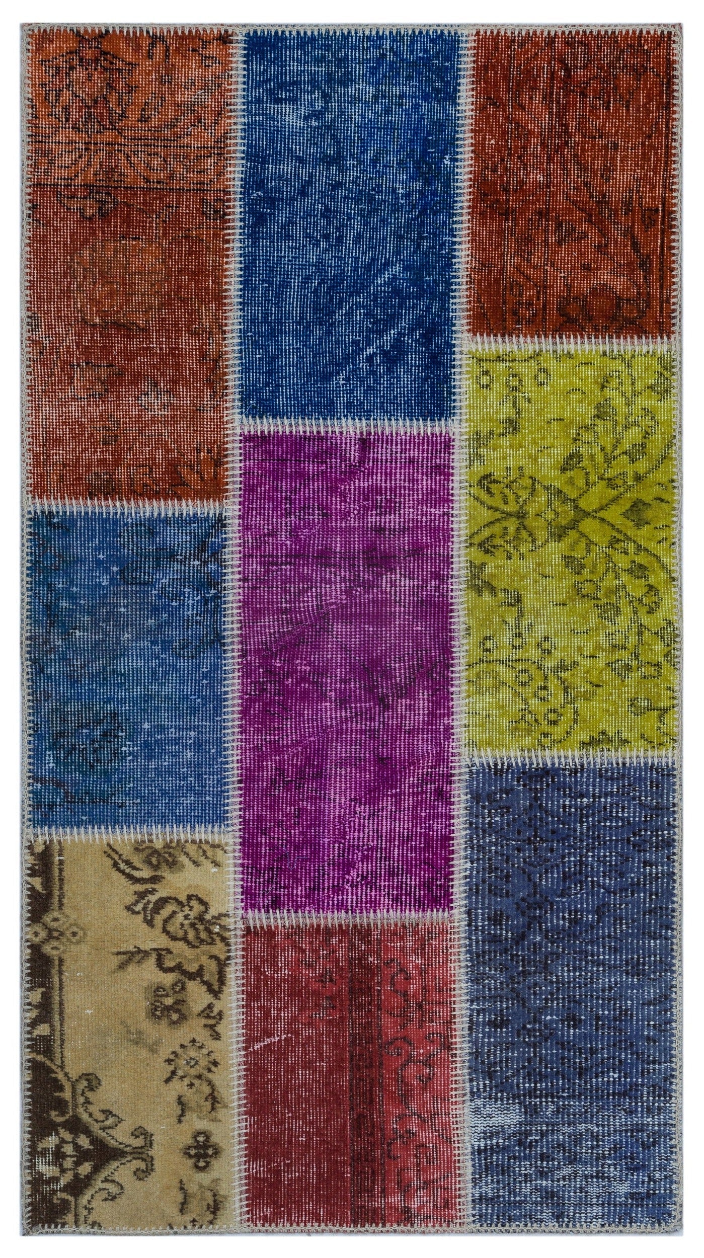 Iskece 25970 Beige Patchwork Wool Handmade Area Rug 2'7" x 4'11"