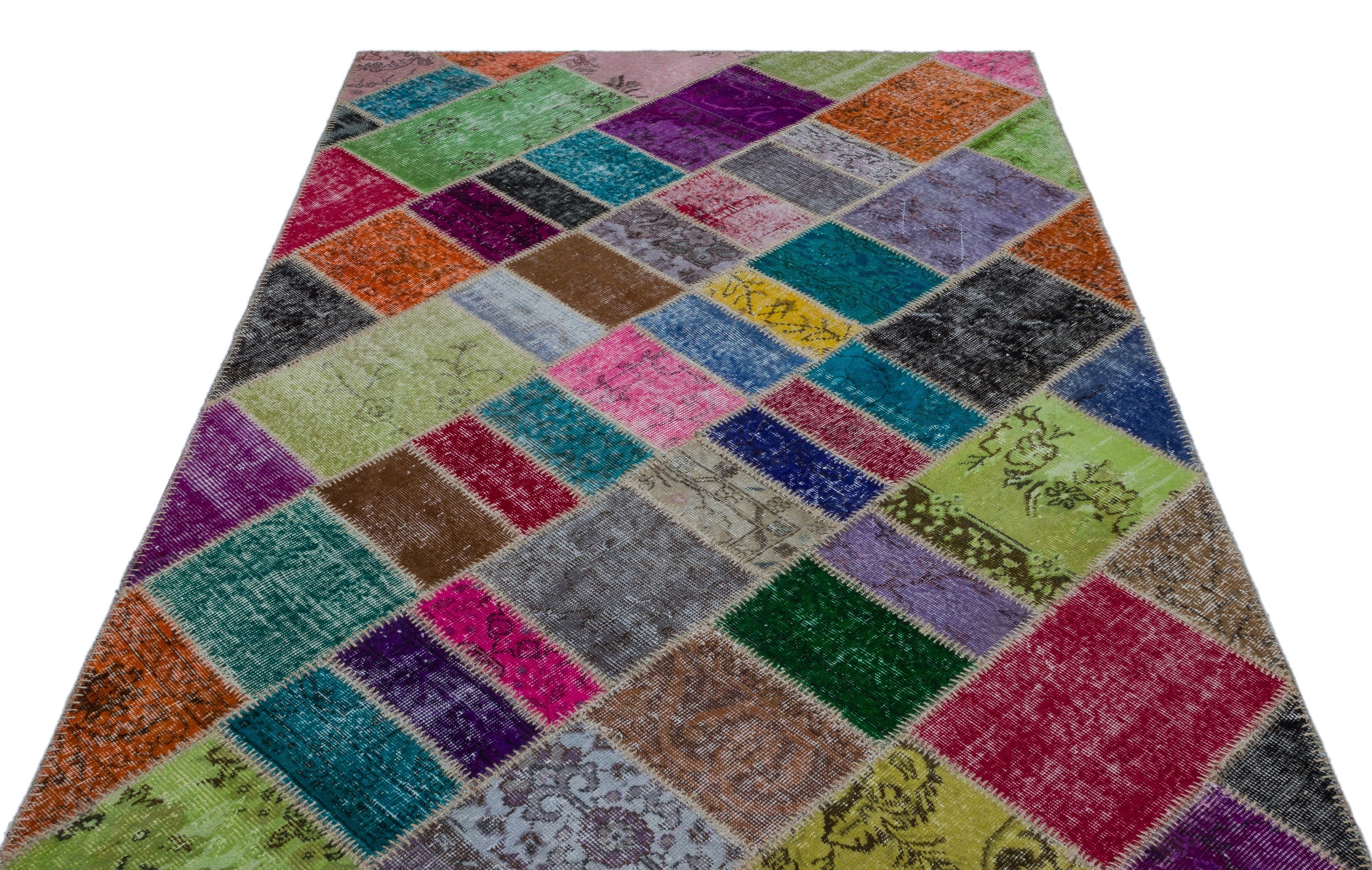Iskece 26453 Beige Patchwork Wool Handmade Area Rug 5'2" x 7'7"