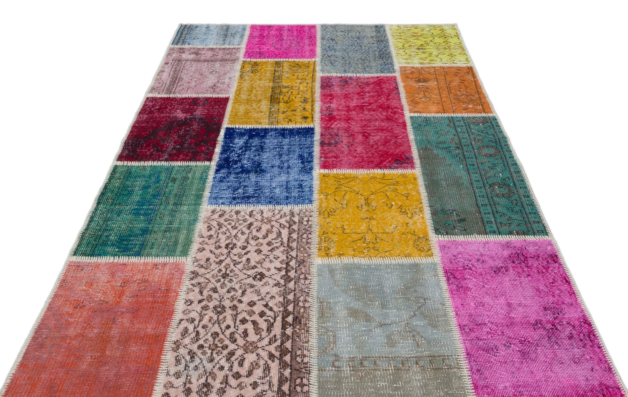 Iskece 31253 Beige Patchwork Wool Handmade Area Rug 5'3" x 7'7"