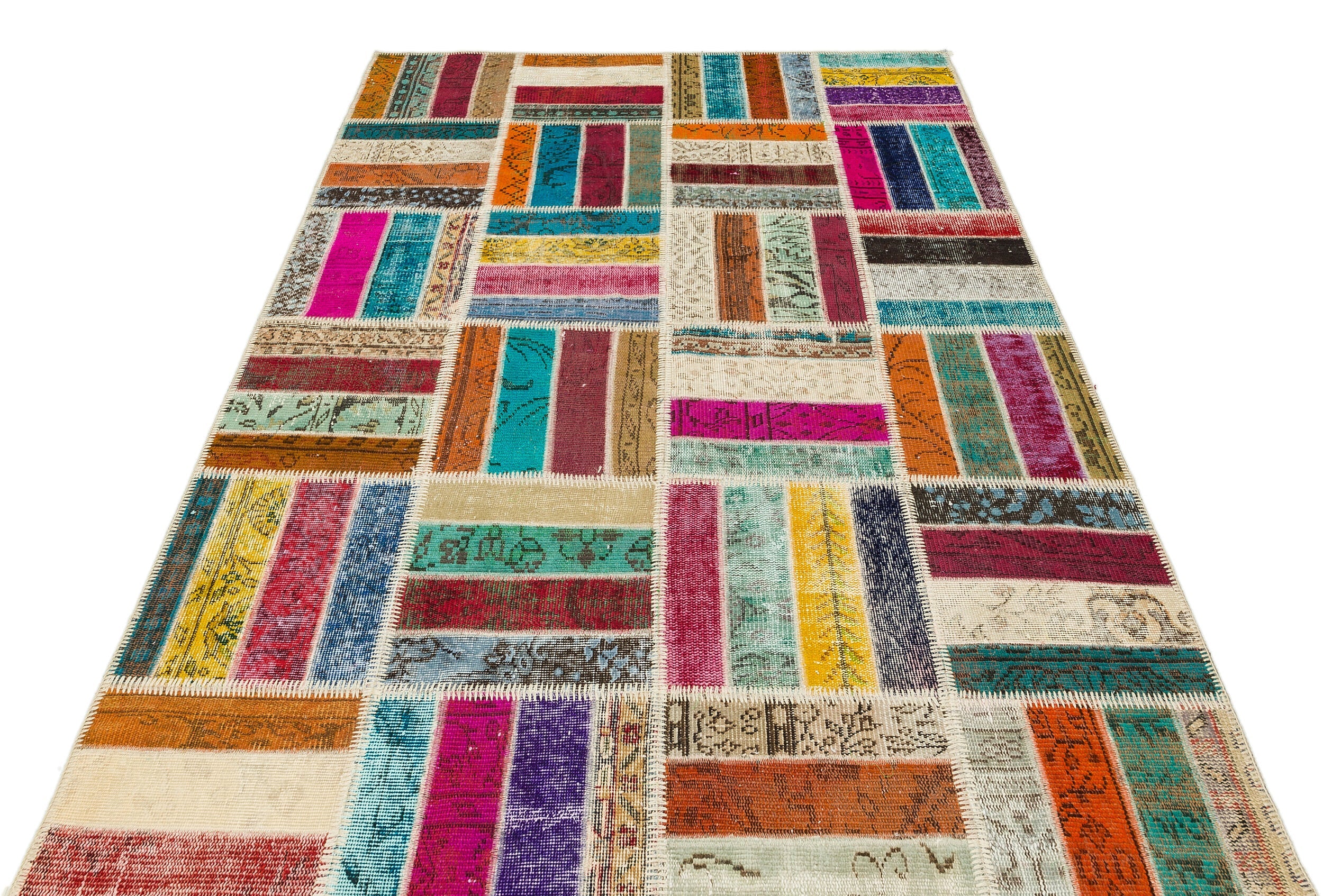 Iskece 35814 Beige Patchwork Wool Handmade Area Rug 5'1" x 8'5"