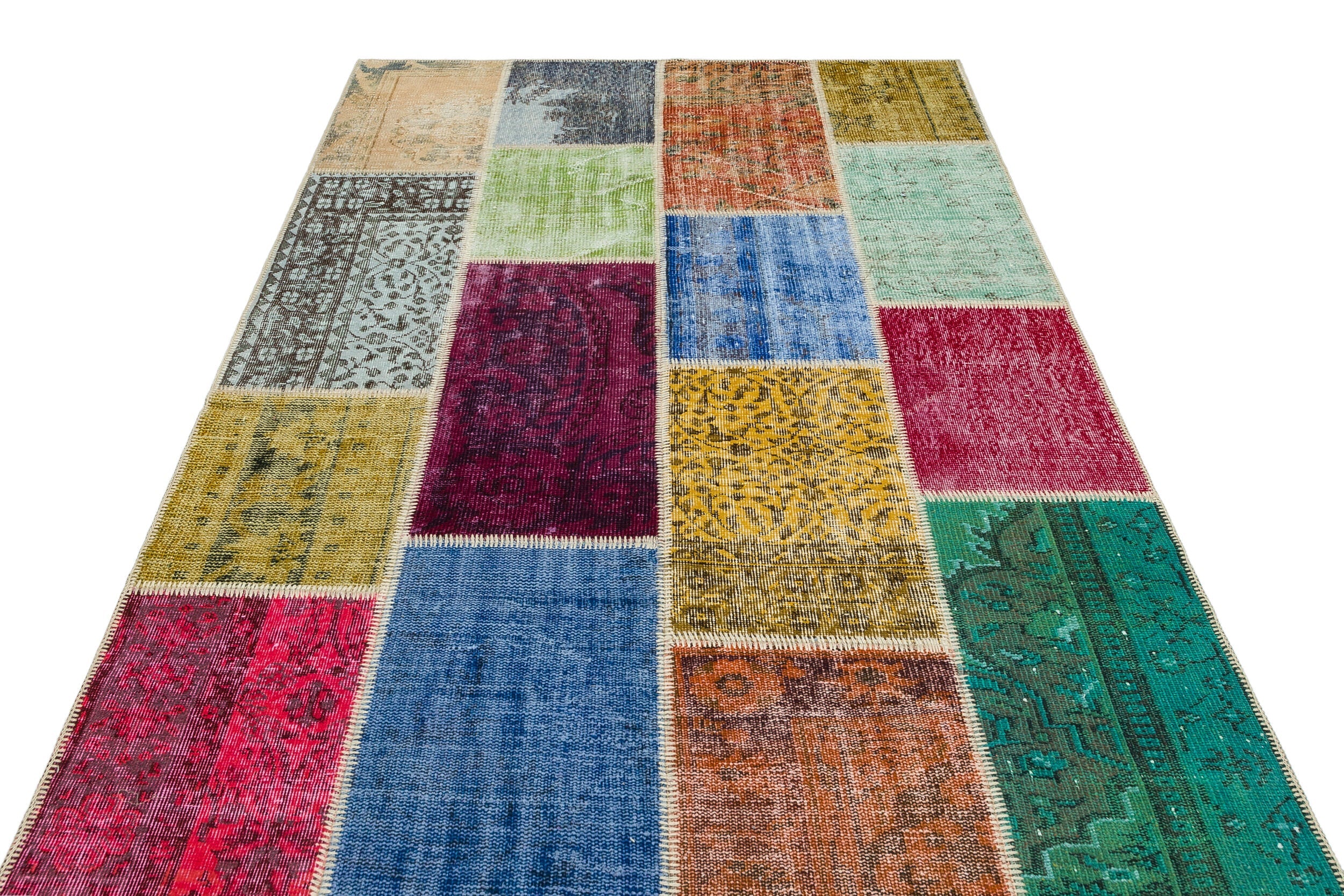 Iskece 36911 Beige Patchwork Wool Handmade Area Rug 5'3" x 7'7"