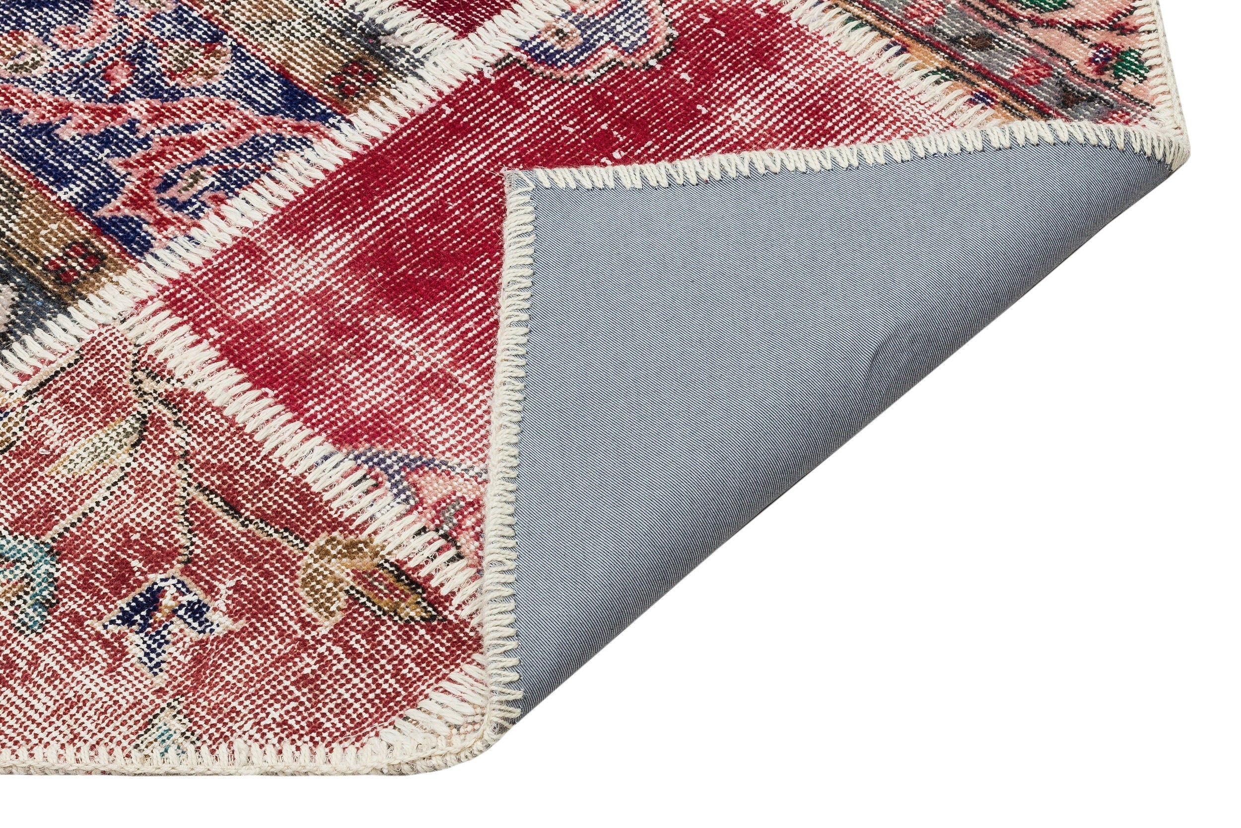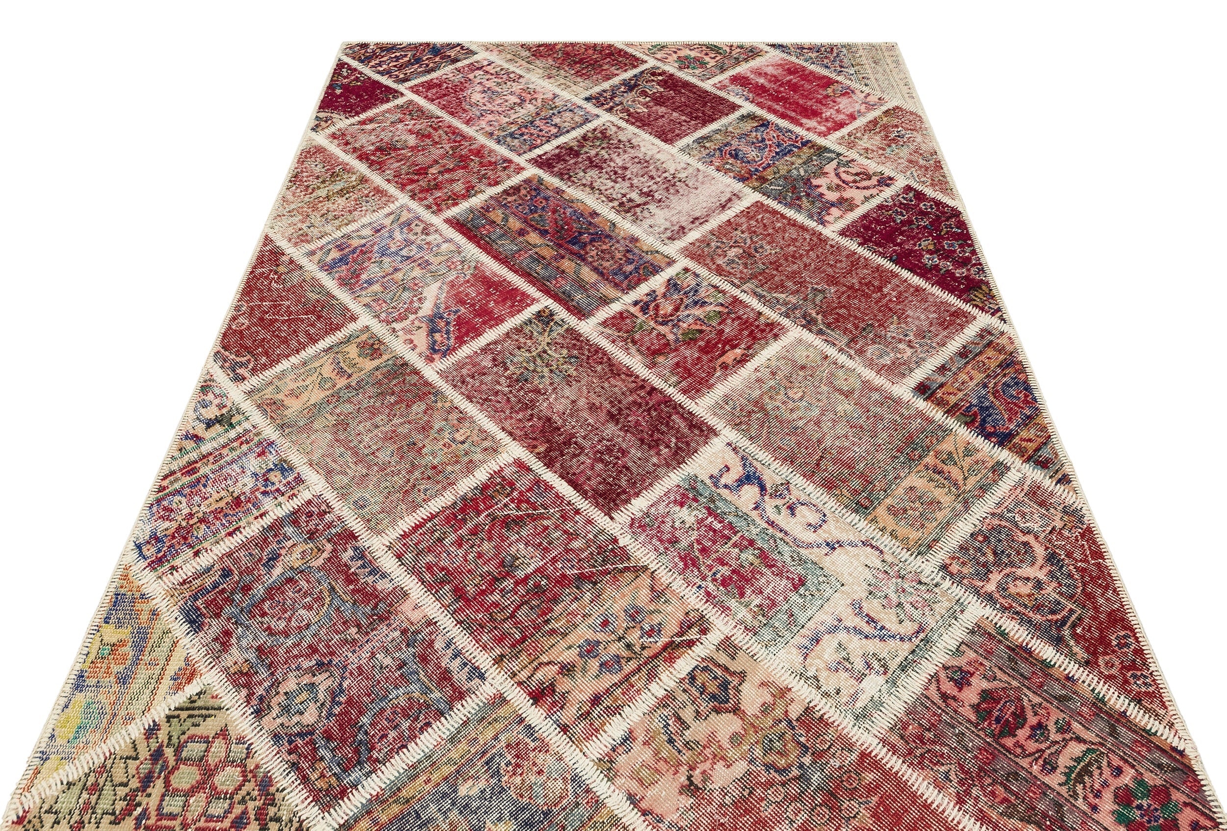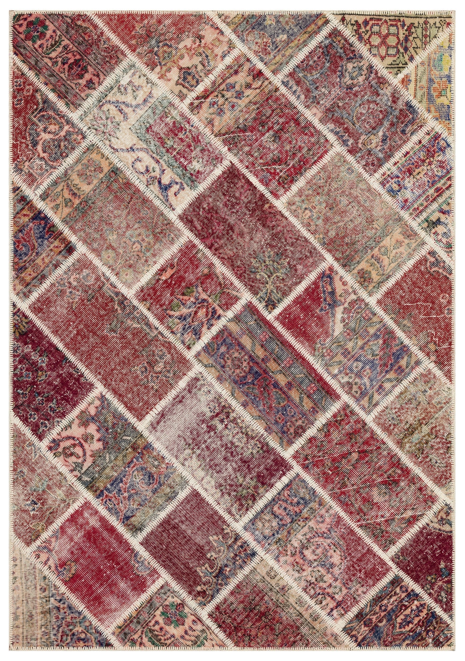 Iskece Red Patchwork Wool Handmade Area Rug 5'4" x 7'8"