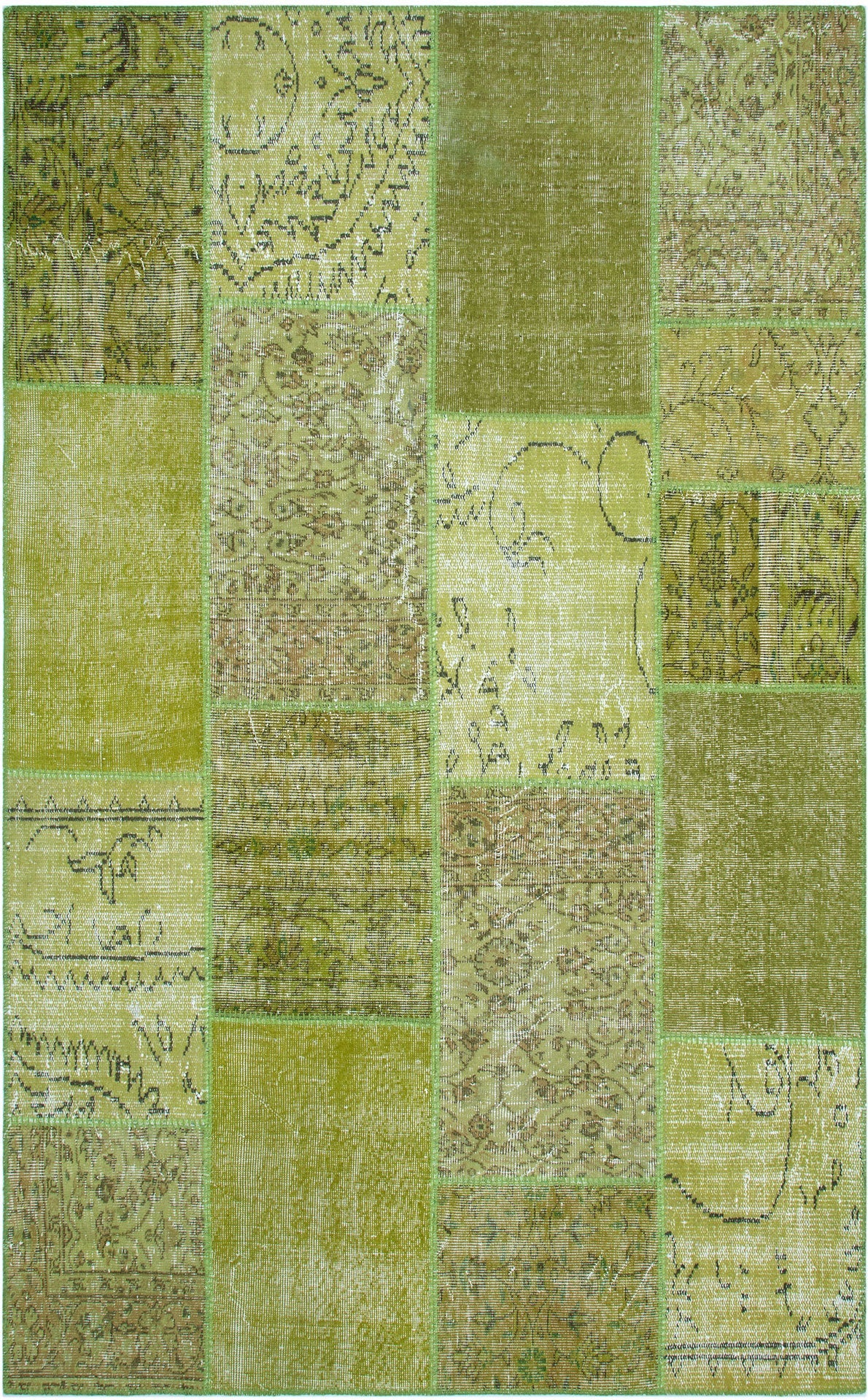 Handmade Wool Area Rug - Green Patchwork Flatweave Carpet With Soft Texture