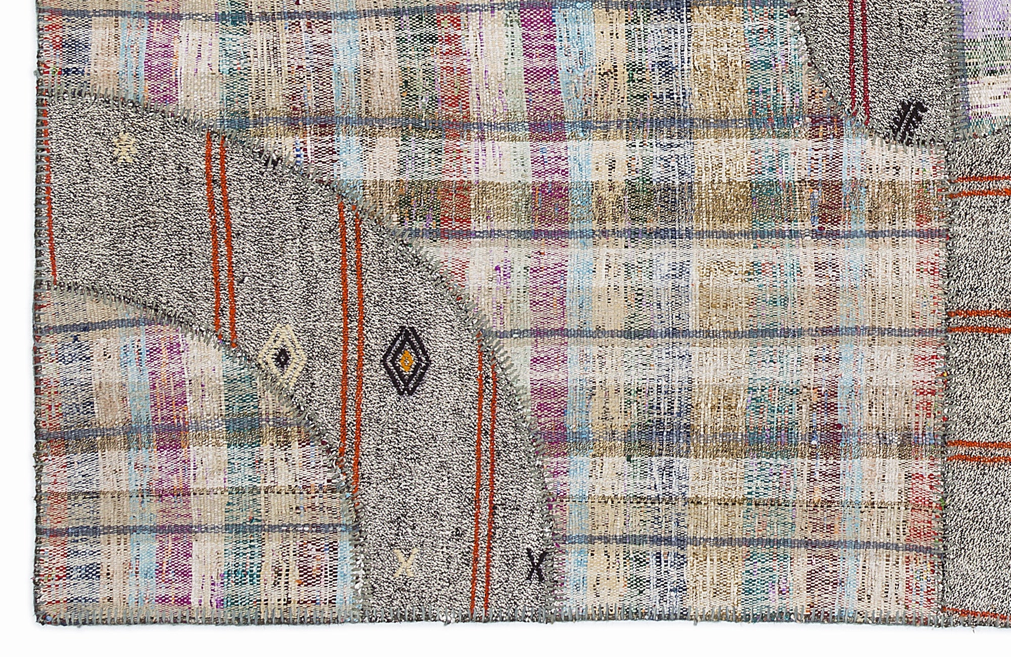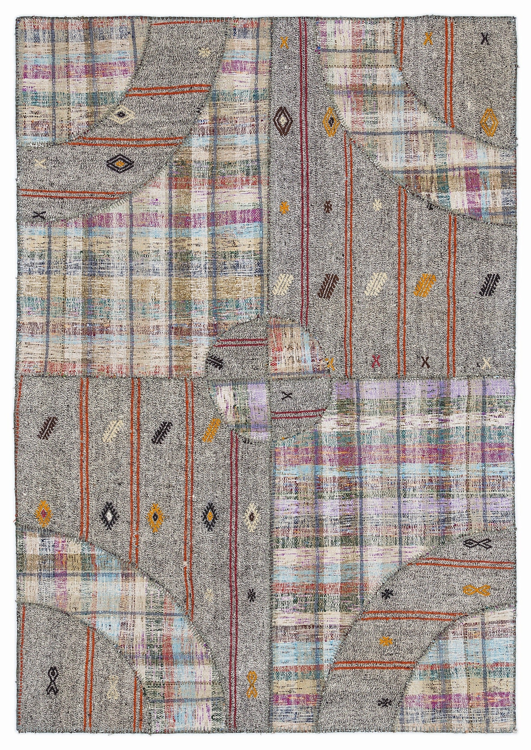 Teselya 1074 Grey Striped Wool Handmade Area Rug 5'3" x 7'7"