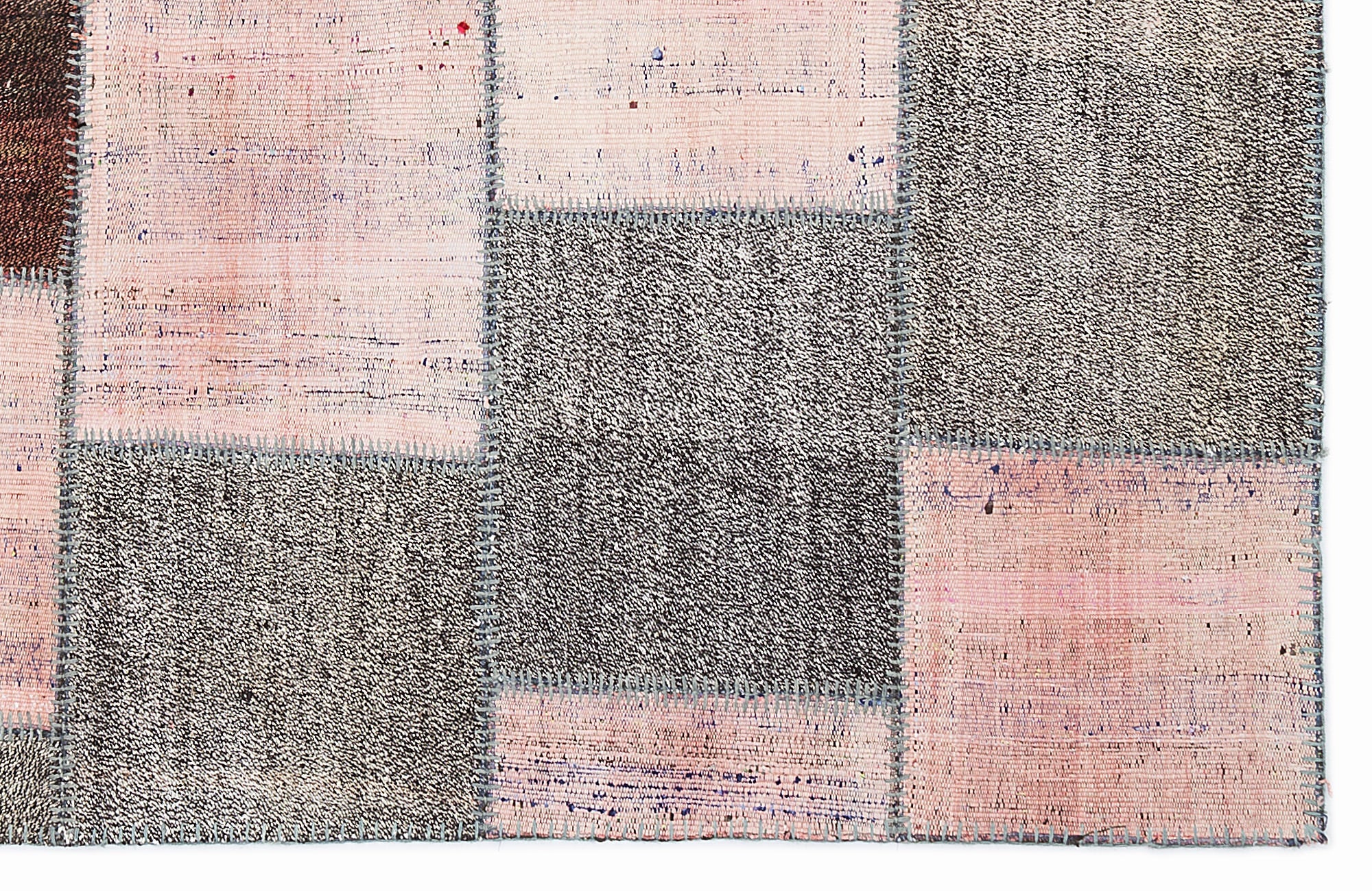Teselya 1112 Pink Patchwork Wool Handmade Area Rug 5'3" x 7'7"