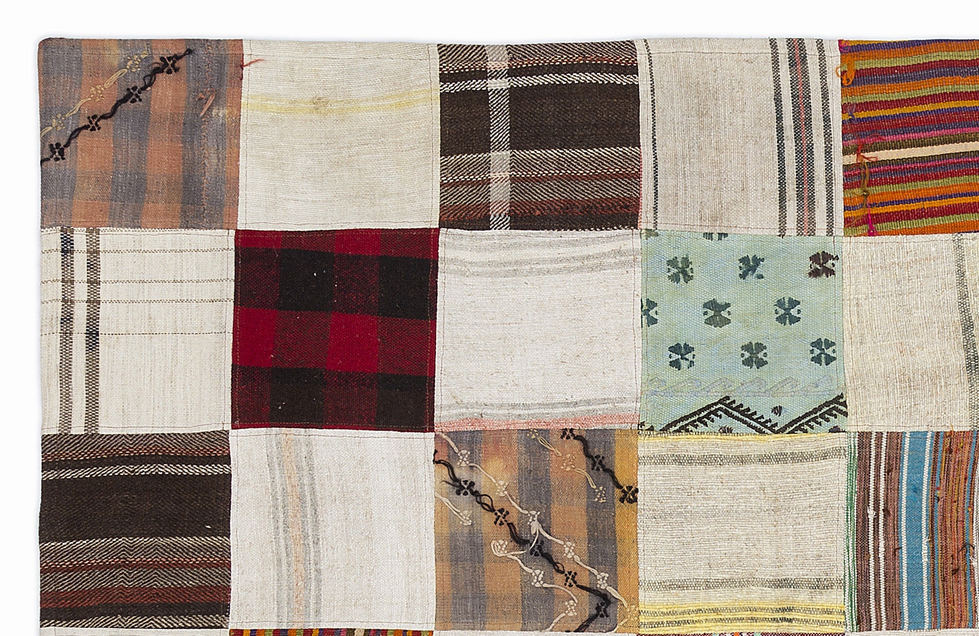 Teselya 1115 Beige Patchwork Wool Handmade Area Rug 5'3" x 7'7"
