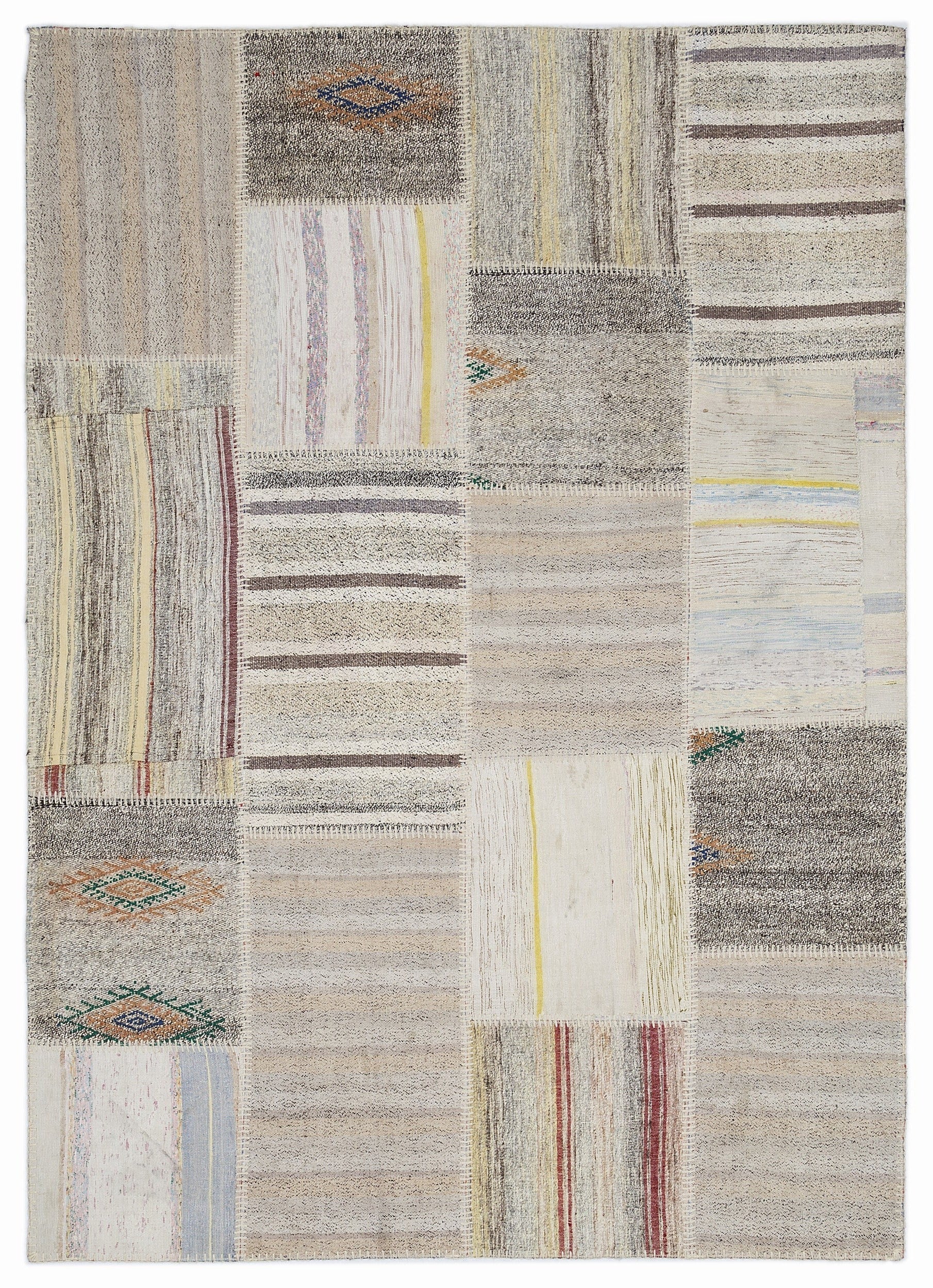 Teselya 1193 Beige Striped Wool Handmade Area Rug 5'3" x 7'7"