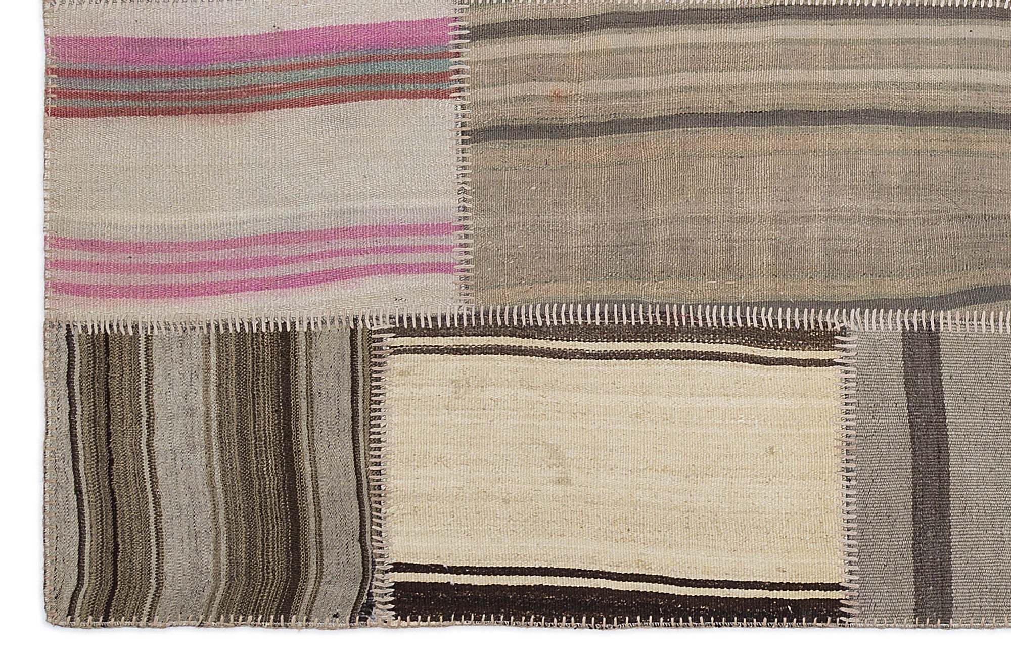 Teselya 1210 Beige Striped Wool Handmade Area Rug 5'3" x 7'7"