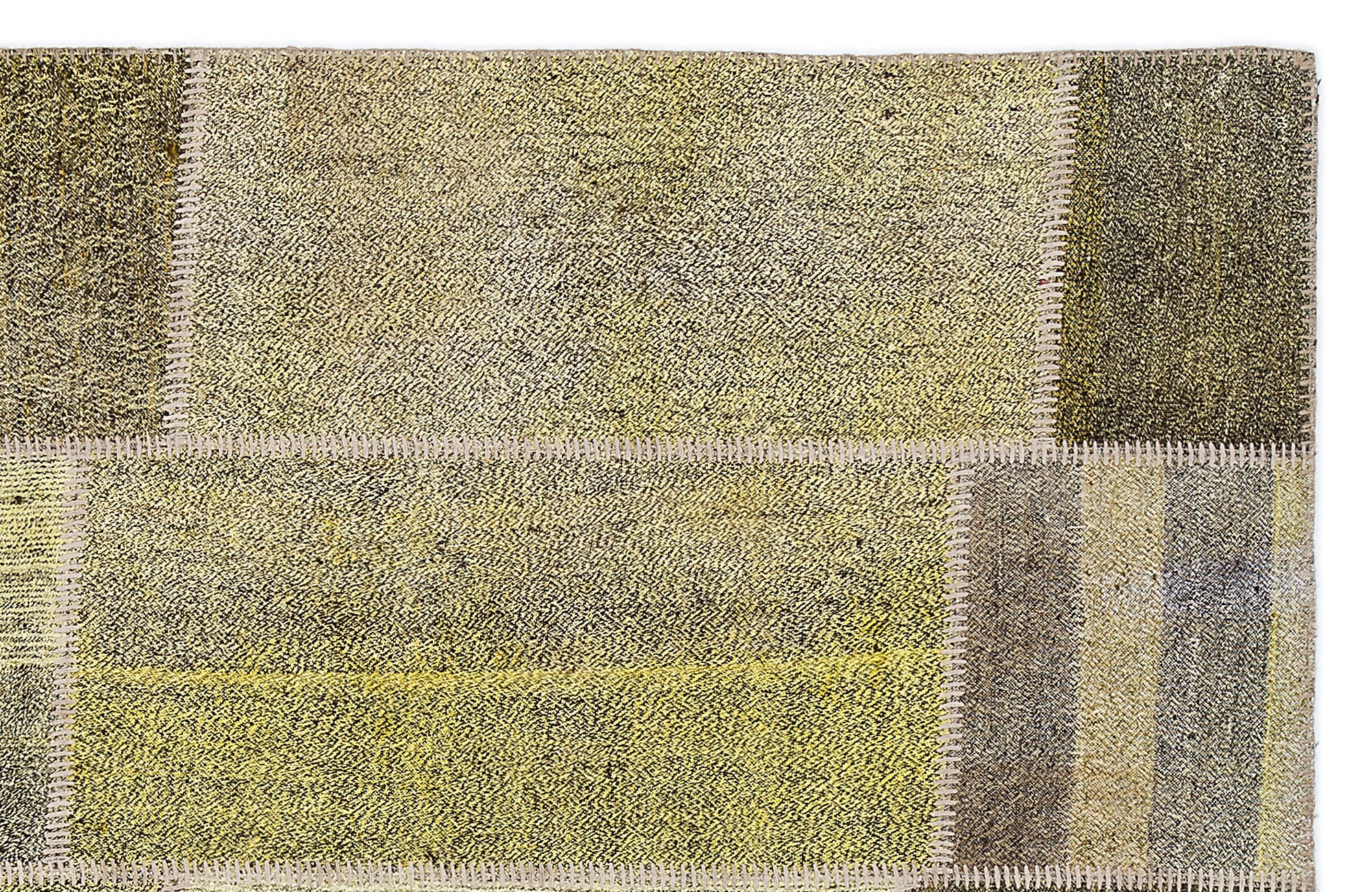 Teselya 1213 Yellow Patchwork Wool Handmade Area Rug 5'3" x 7'7"