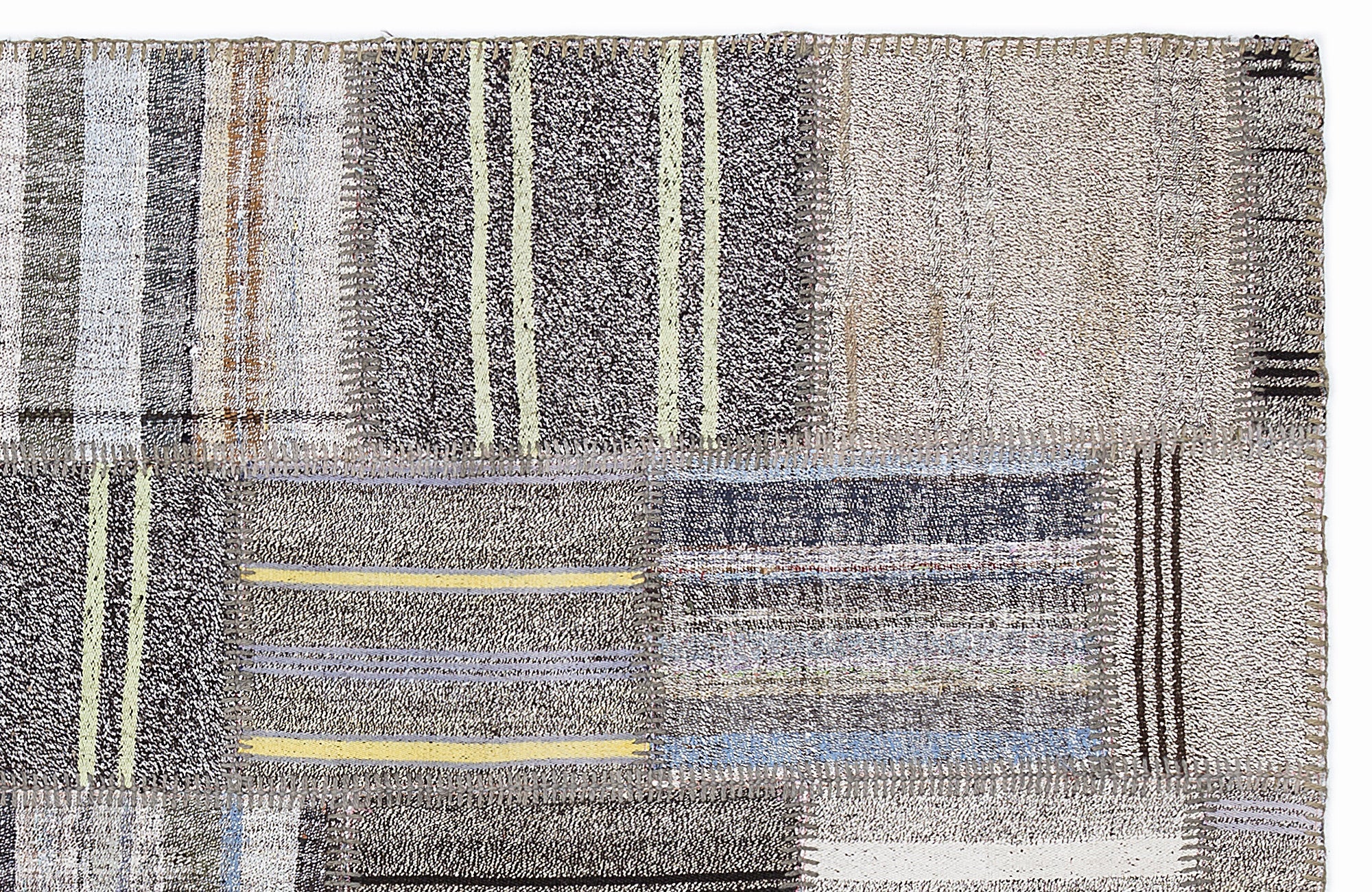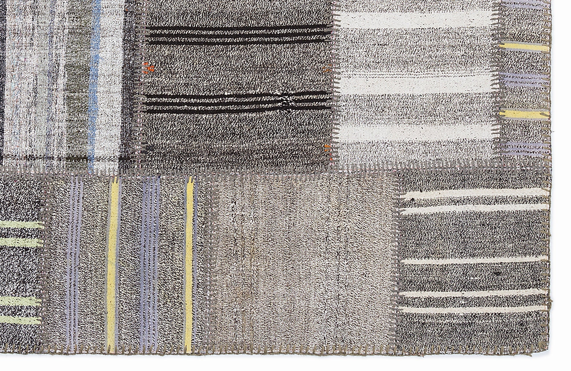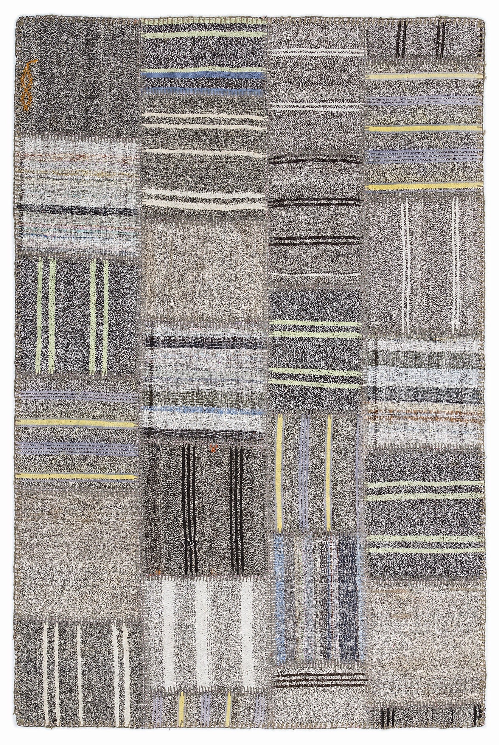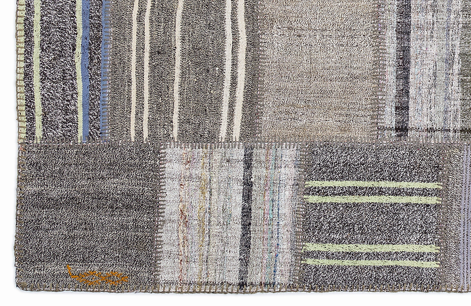 Teselya 1334 Grey Striped Wool Handmade Area Rug 5'3" x 7'7"