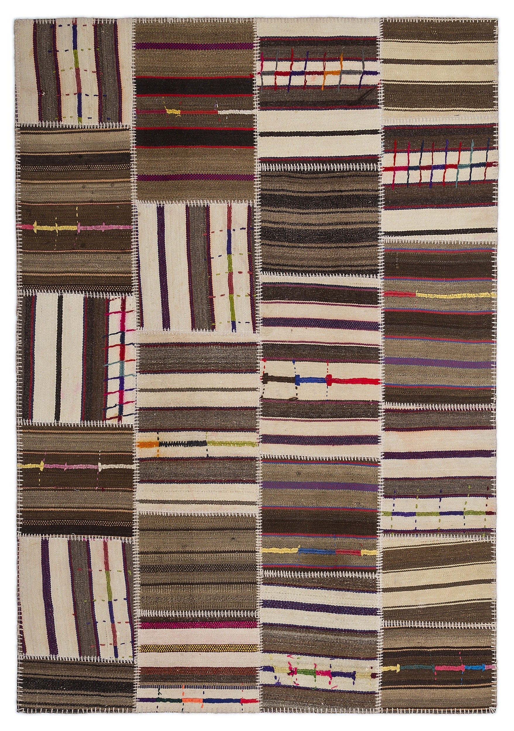 Teselya 2208 Beige Striped Wool Handmade Area Rug 5'3" x 7'7"