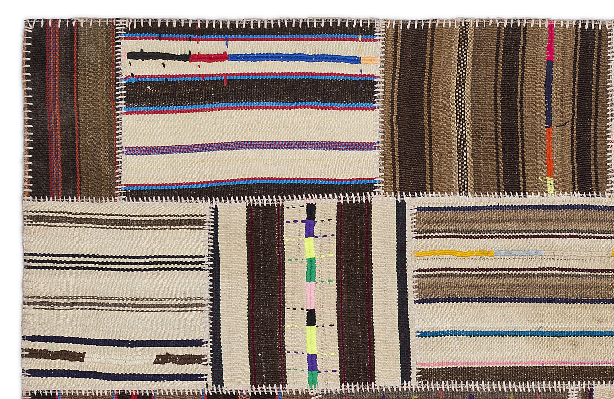 Teselya 2221 Beige Striped Wool Handmade Area Rug 5'3" x 7'7"