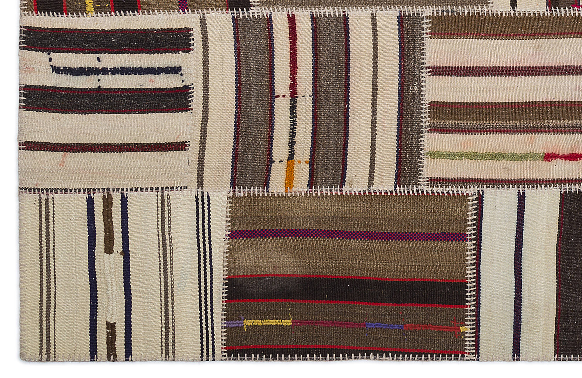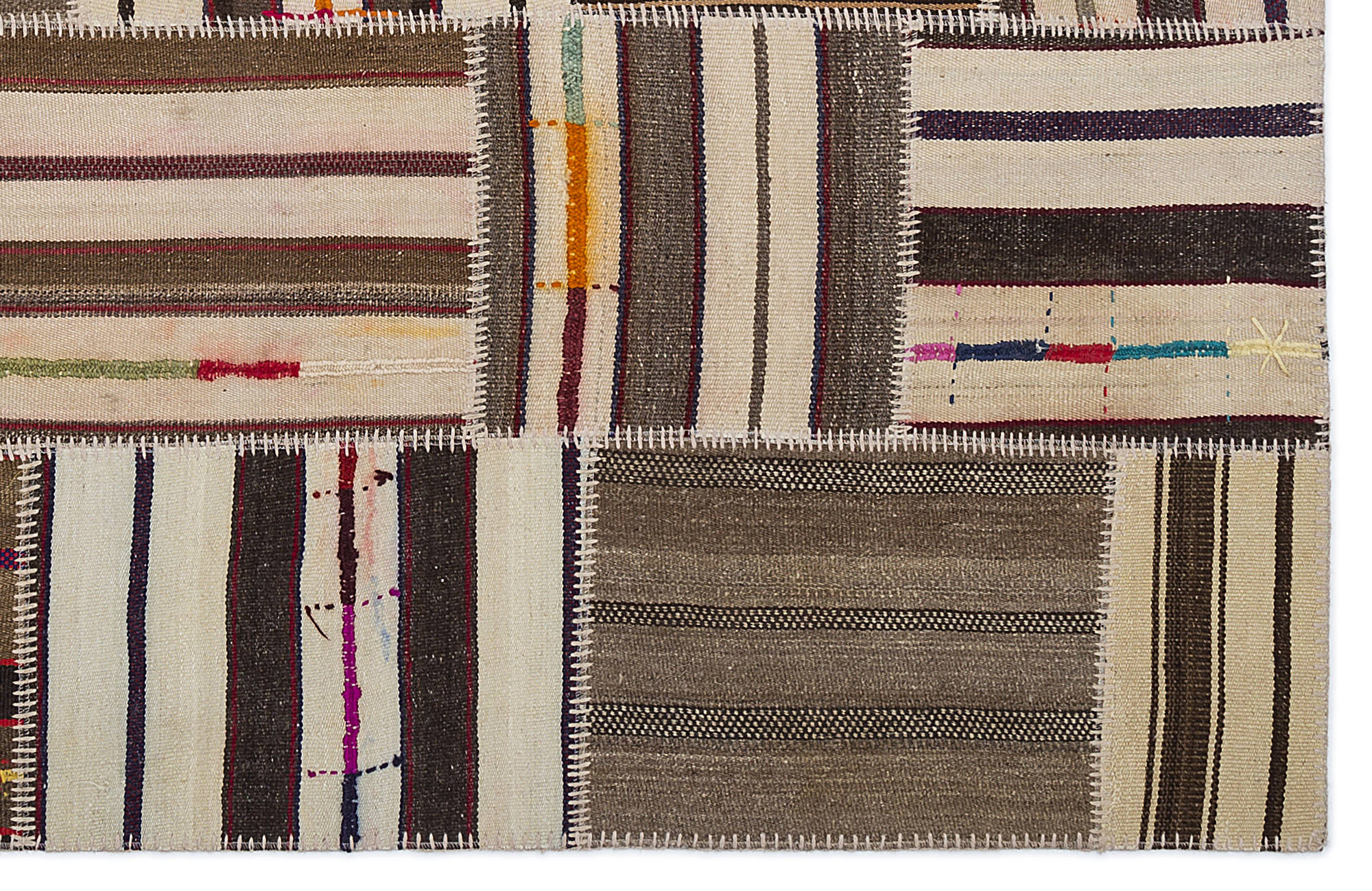 Teselya 2232 Beige Striped Wool Handmade Area Rug 5'3" x 7'7"