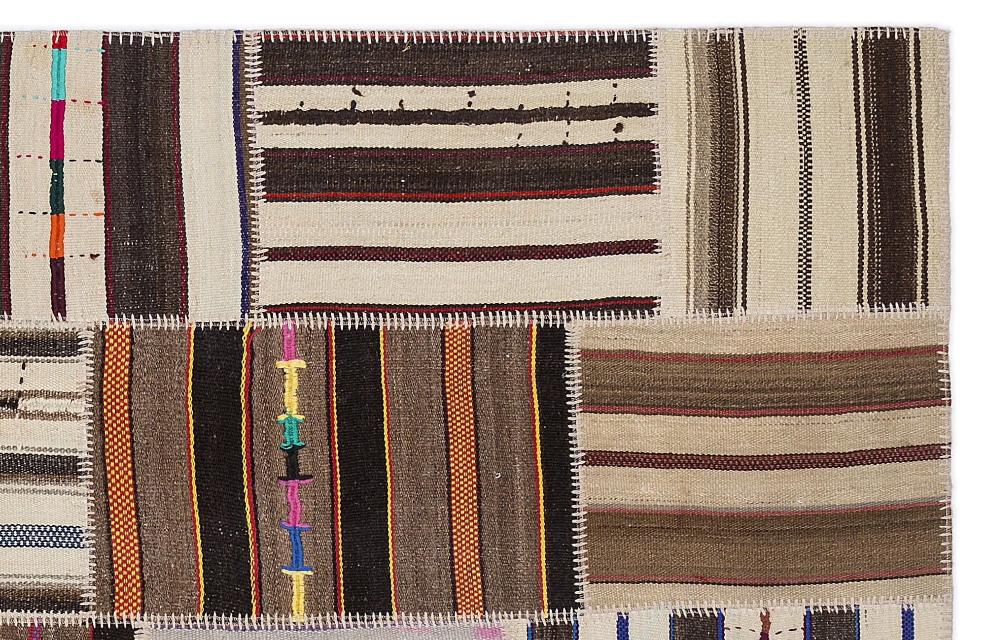 Teselya 2233 Beige Striped Wool Handmade Area Rug 5'3" x 7'7"