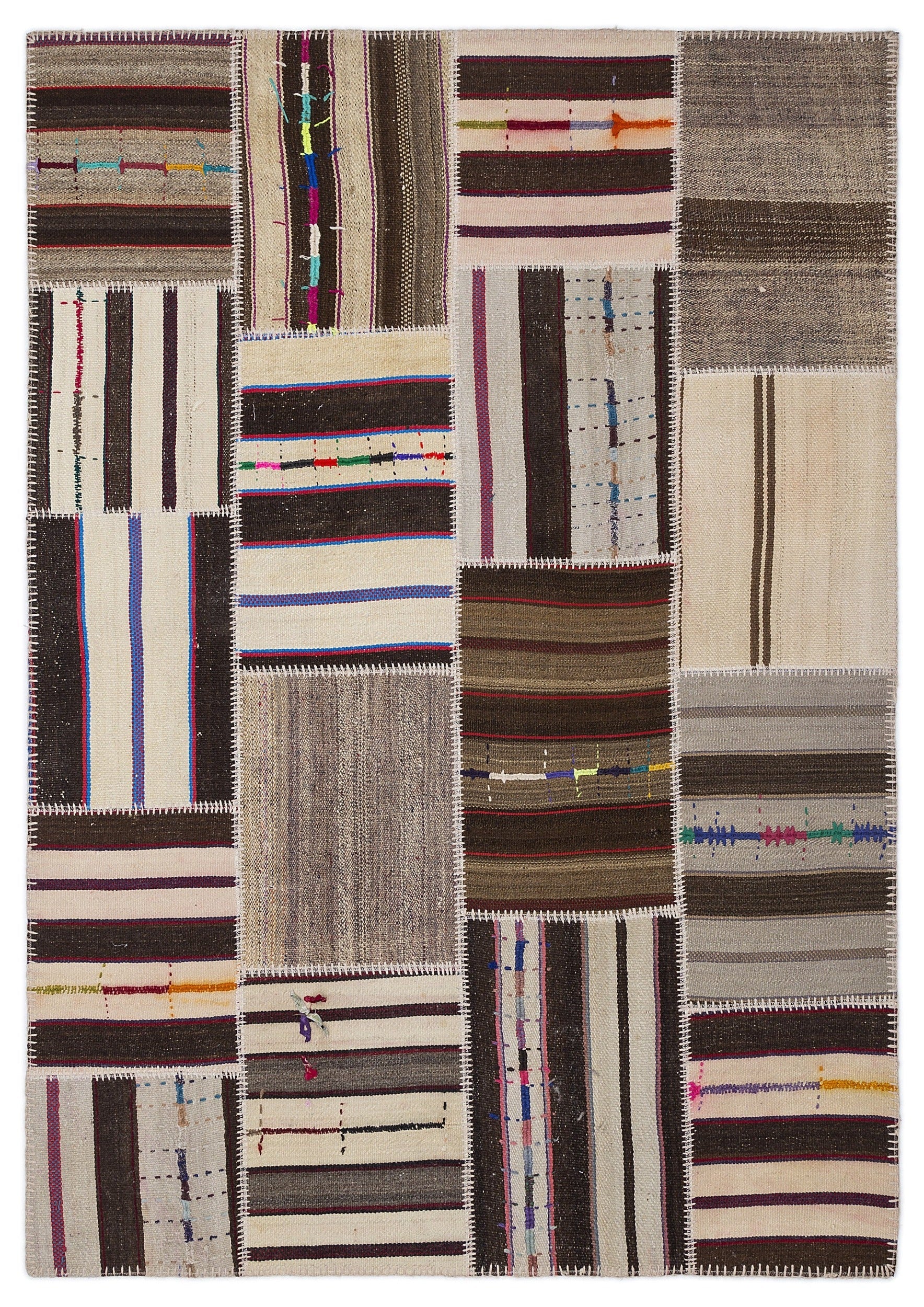 Teselya 2242 Beige Striped Wool Handmade Area Rug 5'3" x 7'7"