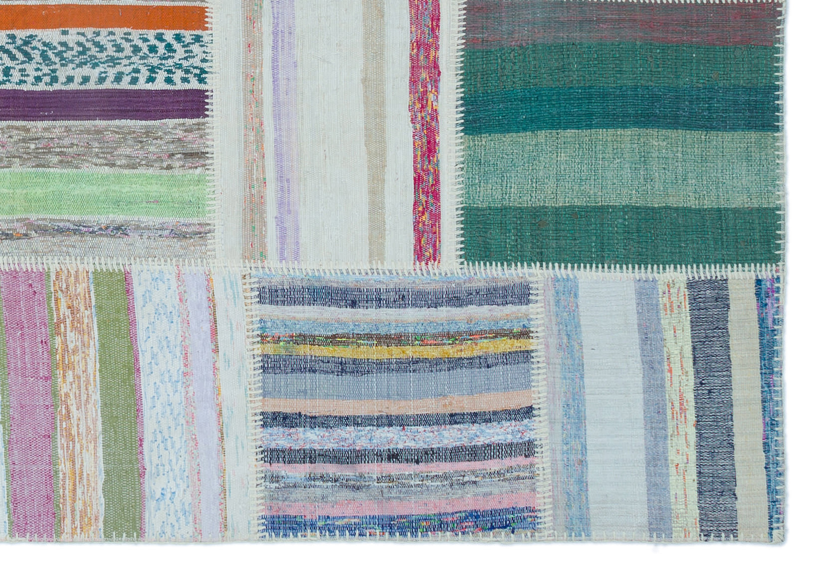 Teselya 22539 Patchwork Striped Wool Handmade Area Rug 5'3" x 7'7"