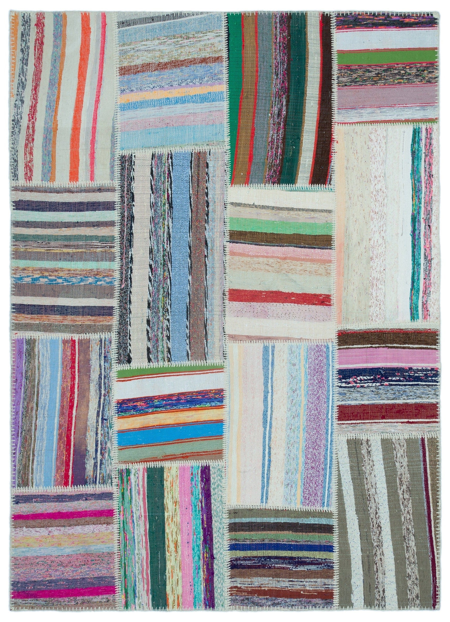 Teselya 25241 Patchwork Striped Wool Handmade Area Rug 5'2" x 7'3"