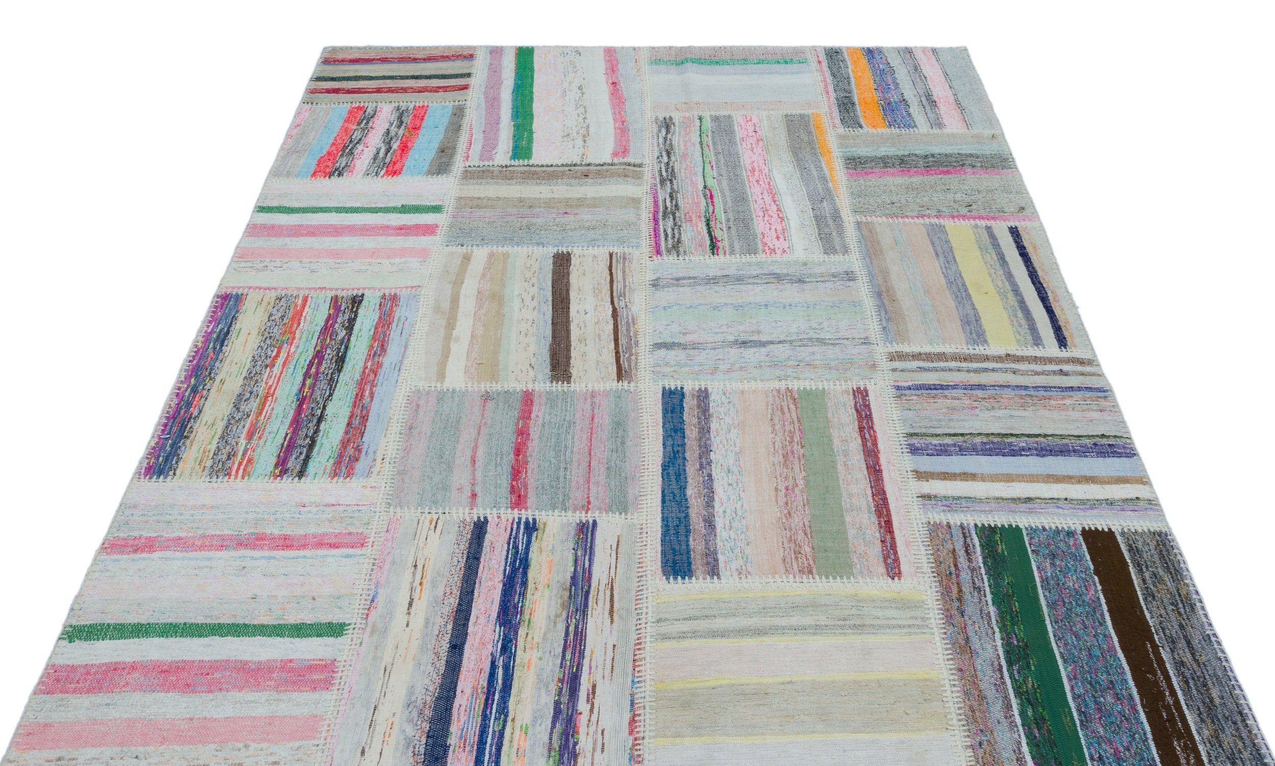Teselya 25247 Beige Striped Wool Handmade Area Rug 5'3" x 7'3"