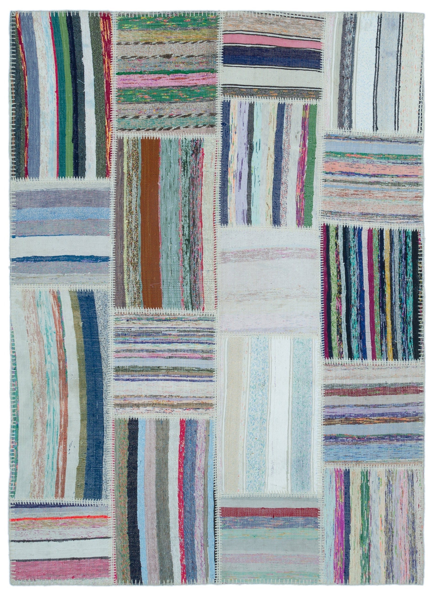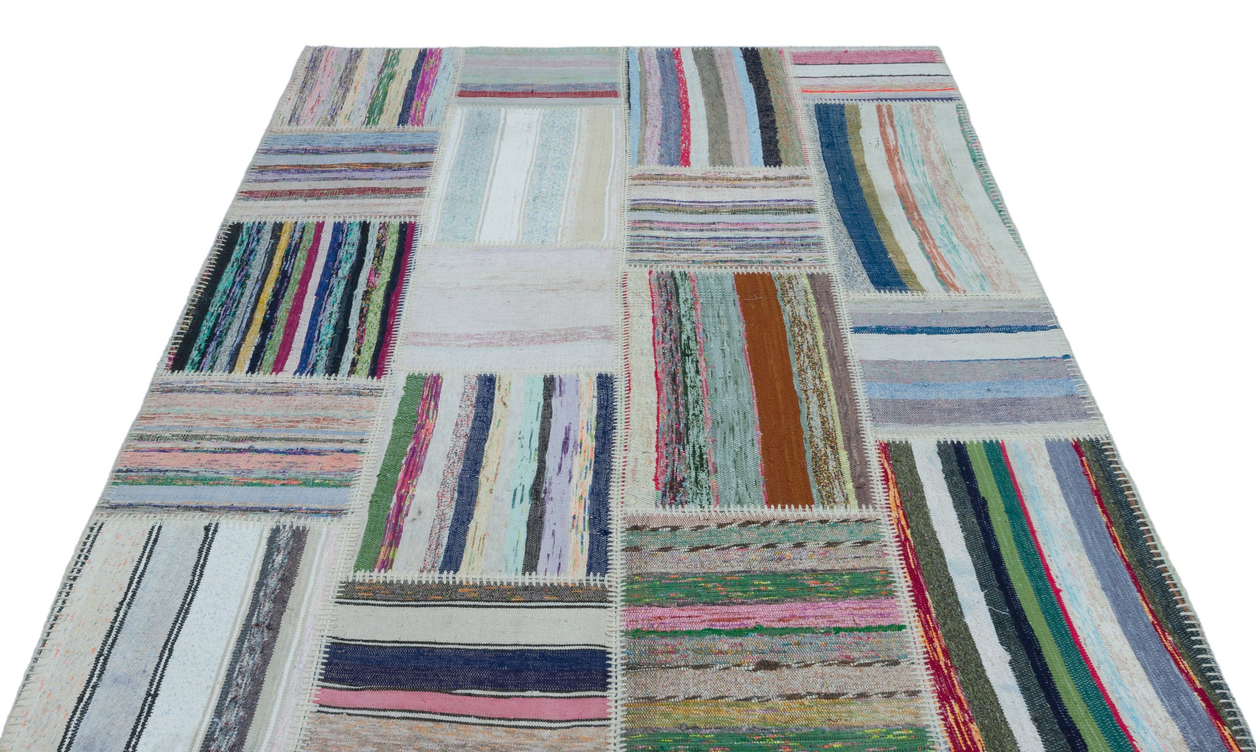 Teselya 25400 Patchwork Striped Wool Handmade Area Rug 5'3" x 7'3"