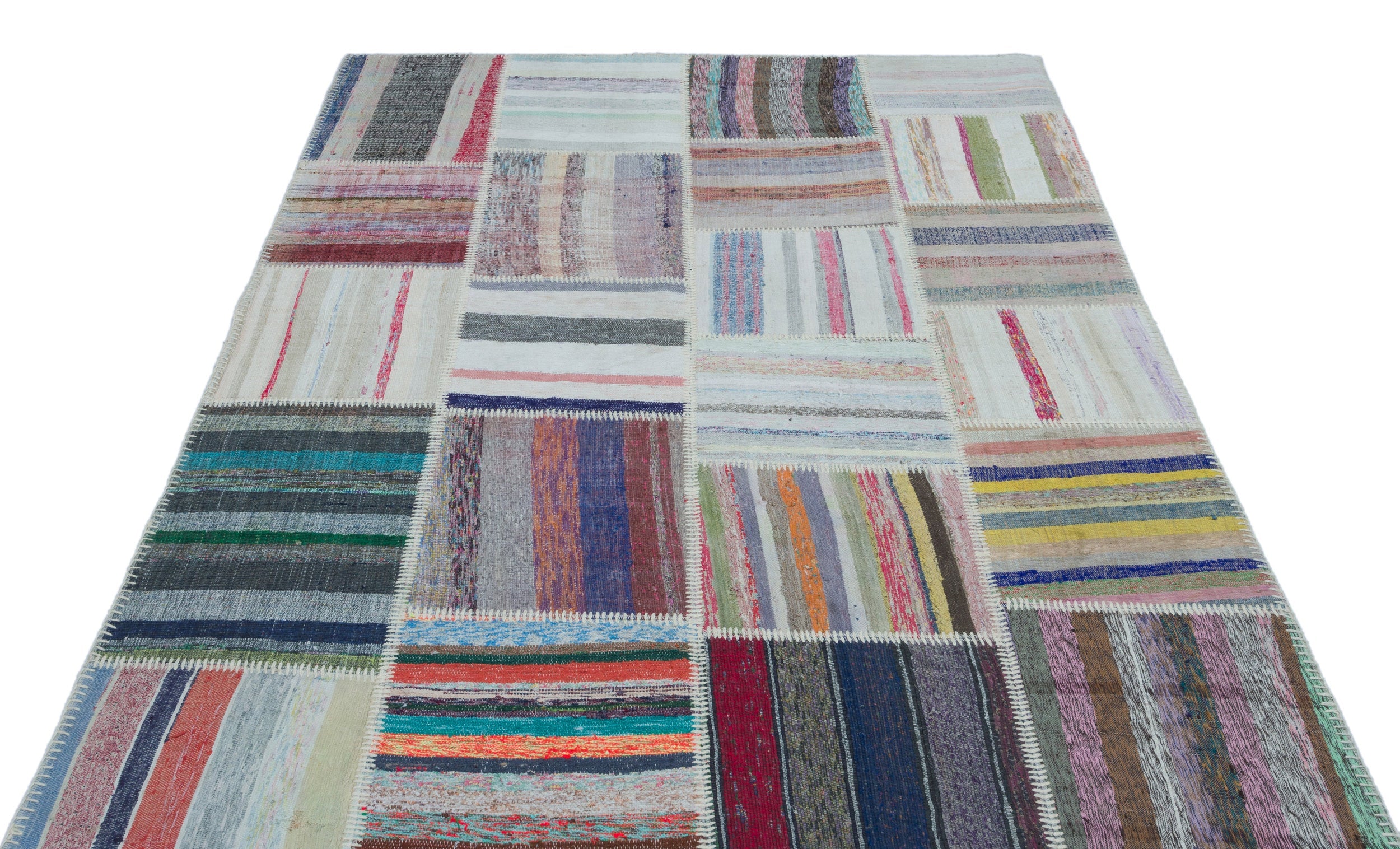 Teselya 25449 Patchwork Striped Wool Handmade Area Rug 5'3" x 7'7"