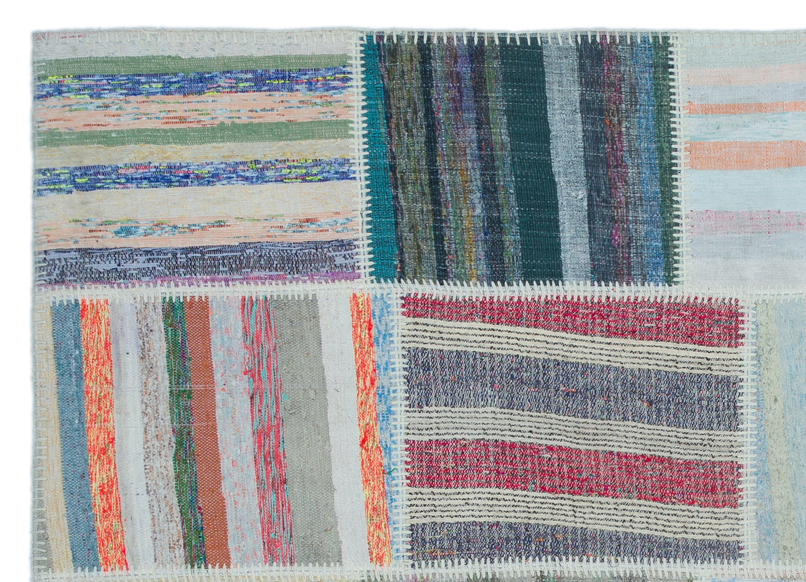 Teselya 25509 Beige Striped Wool Handmade Area Rug 5'2" x 7'3"