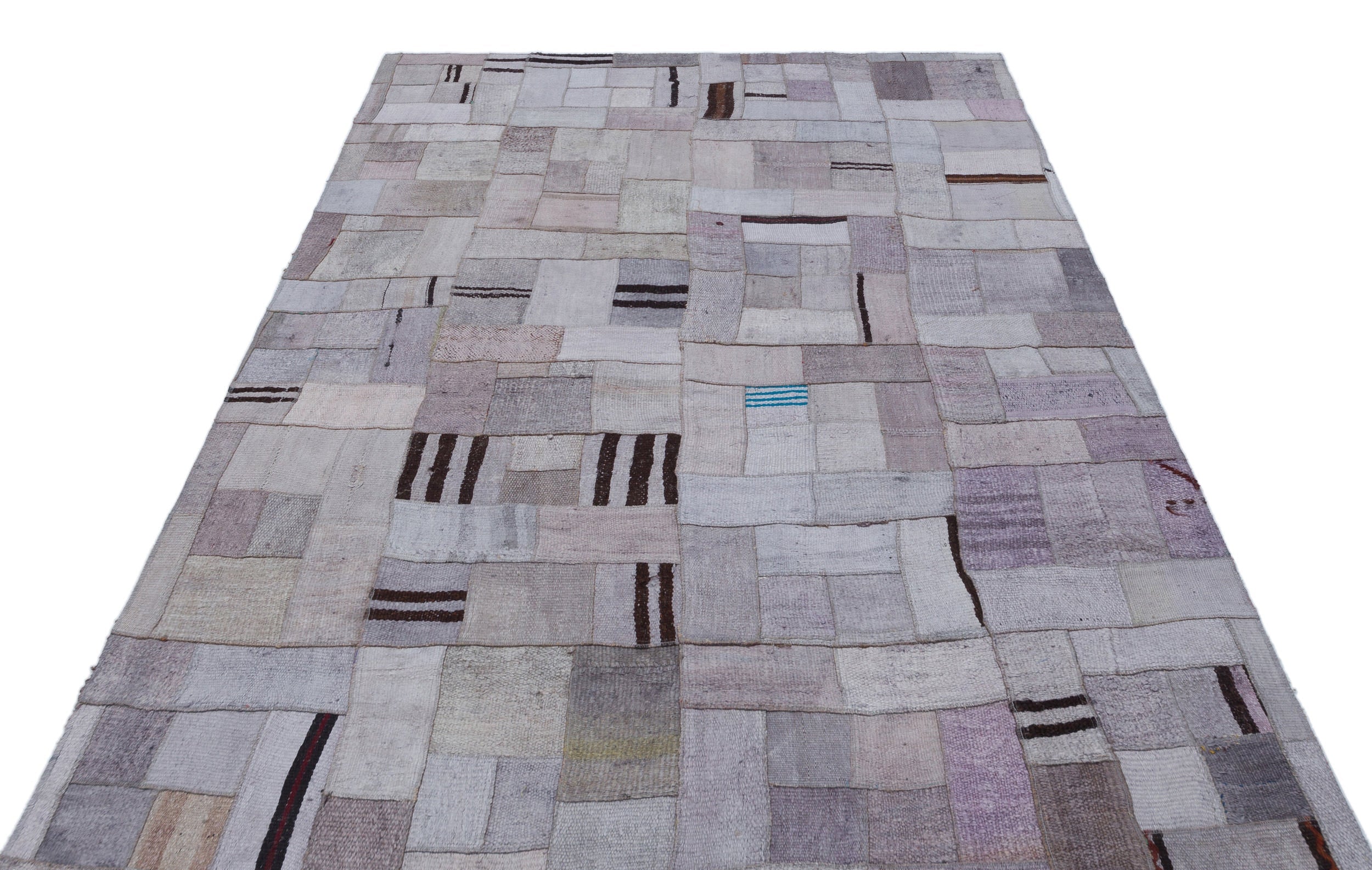 Teselya 32964 Purple Patchwork Wool Handmade Area Rug 5'4" x 7'7"