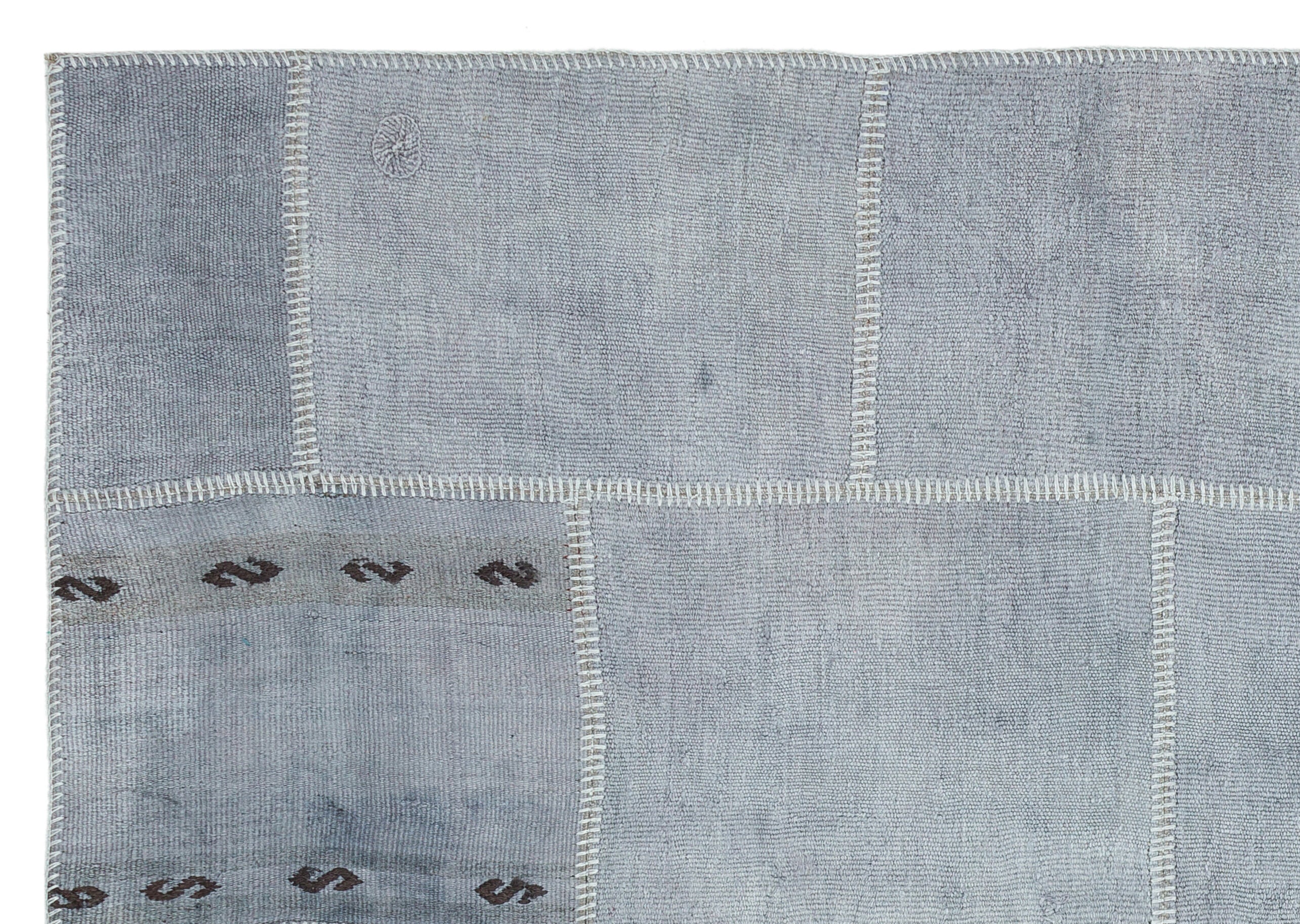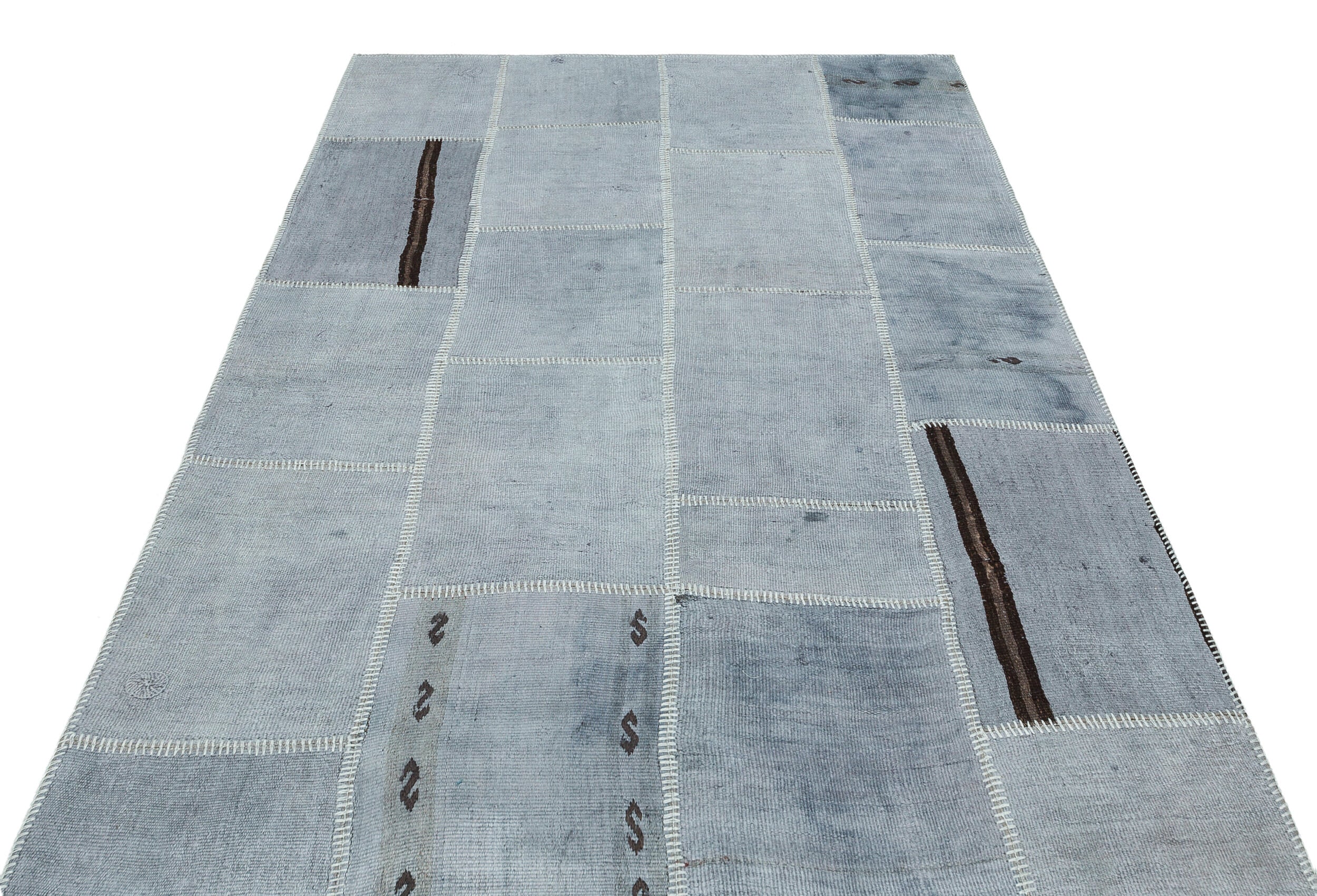 Teselya 36939 Blue Patchwork Wool Handmade Area Rug 5'3" x 7'7"