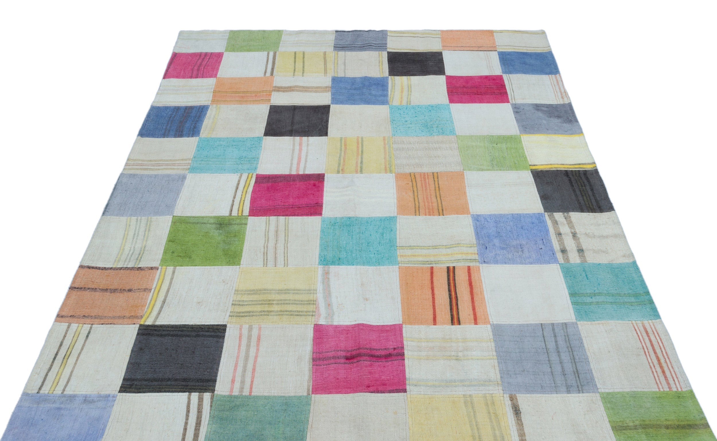 Teselya Beige Patchwork Wool Handmade Area Rug 5'2" x 7'4"