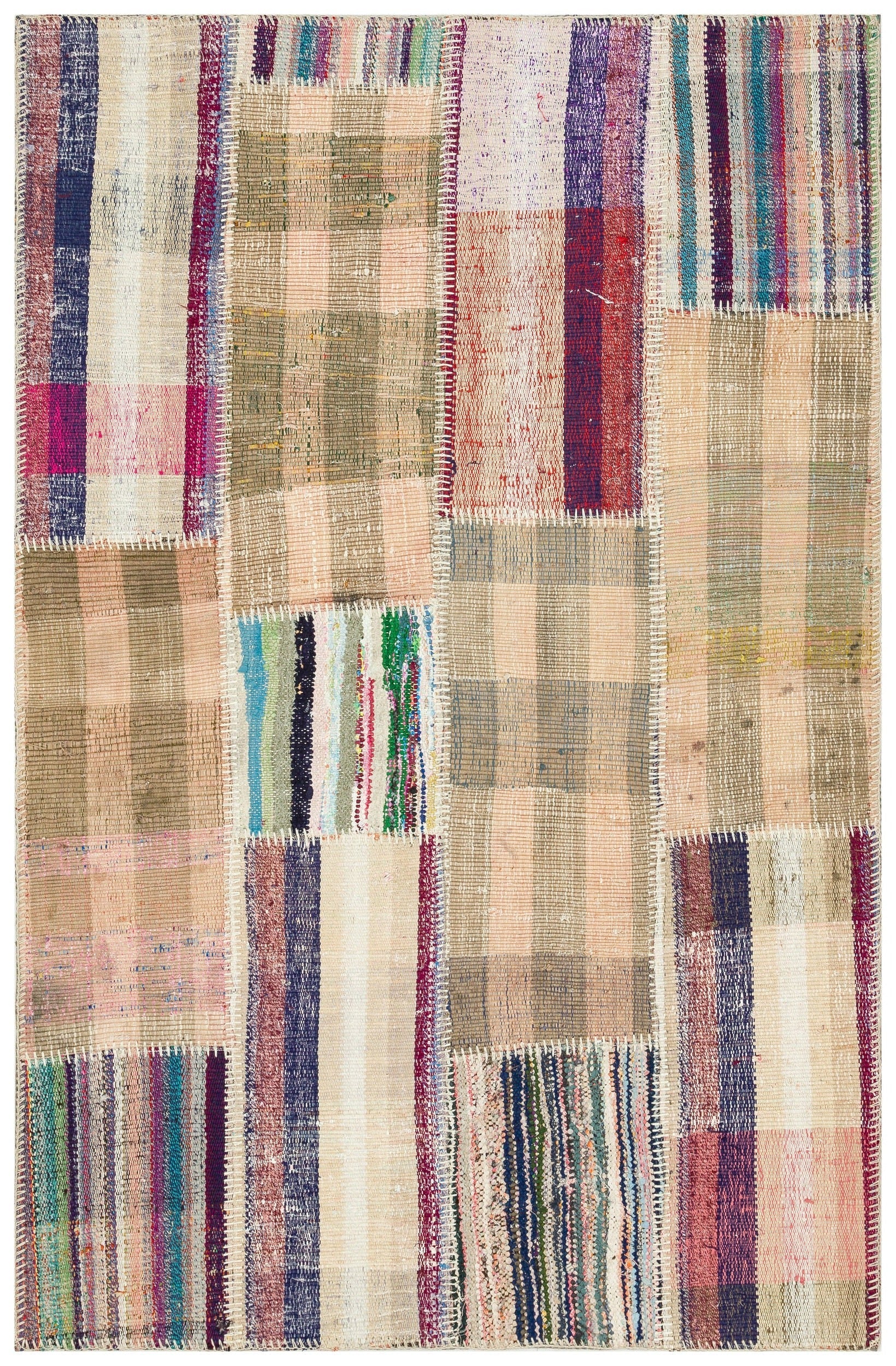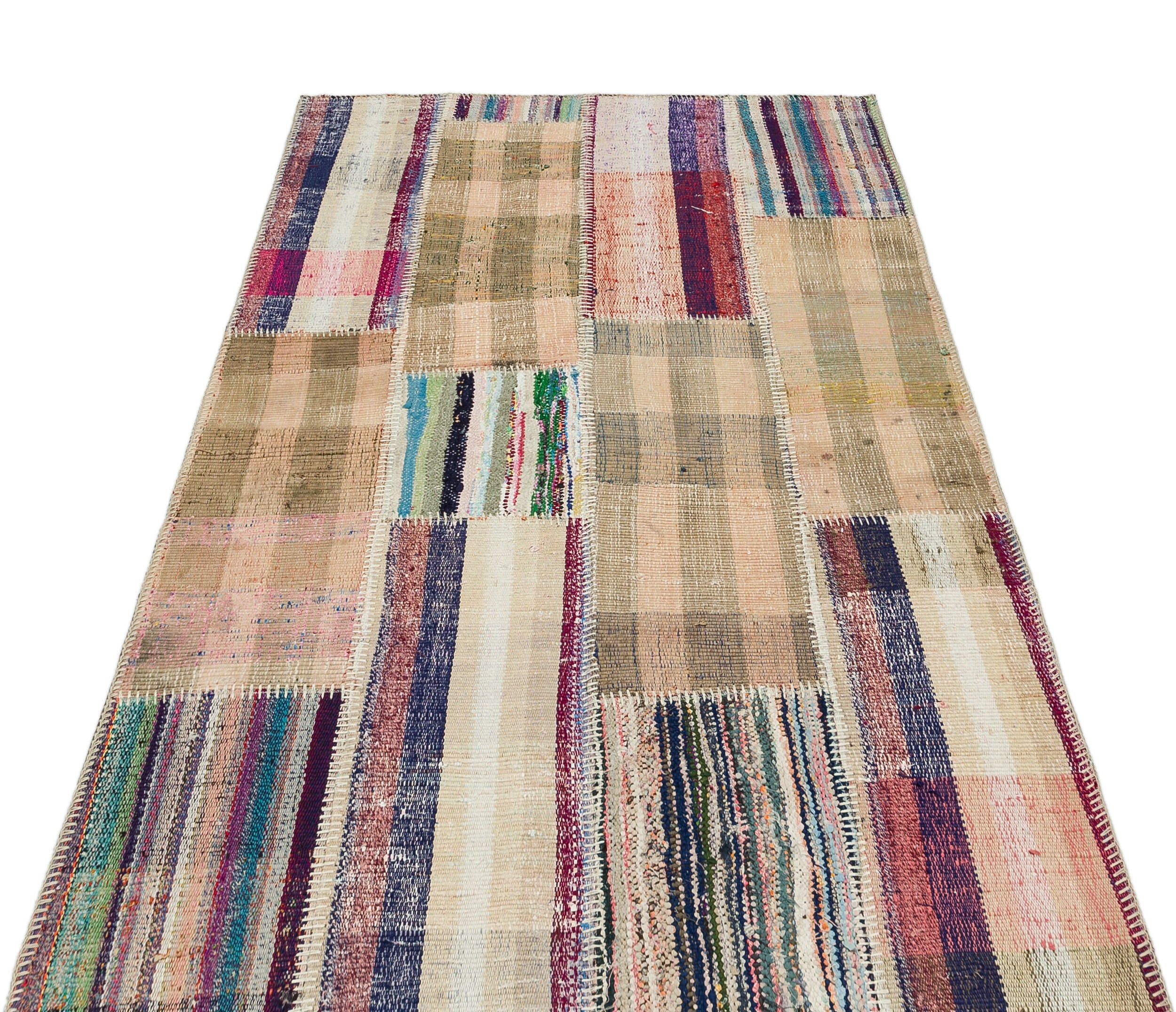 Teselya Beige Striped Wool Handmade Area Rug 3'8" x 5'9"