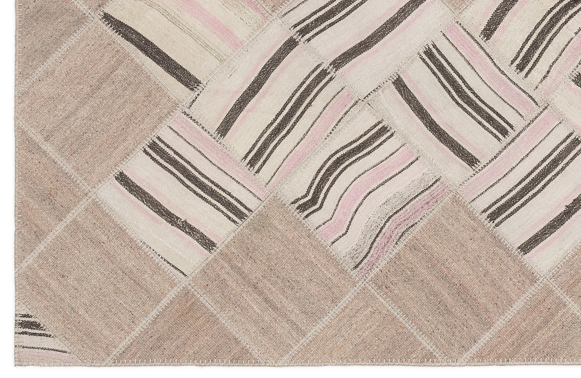 Teselya Beige Striped Wool Handmade Area Rug 4'4" x 7'3"