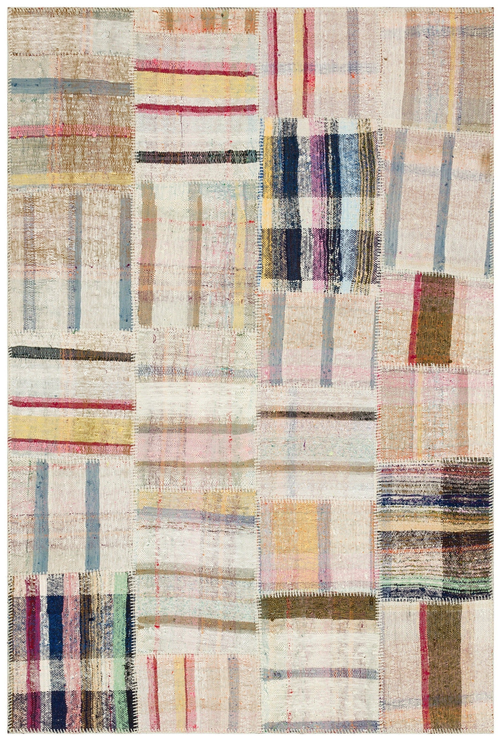 Teselya Beige Striped Wool Handmade Area Rug 4'11" x 7'5"