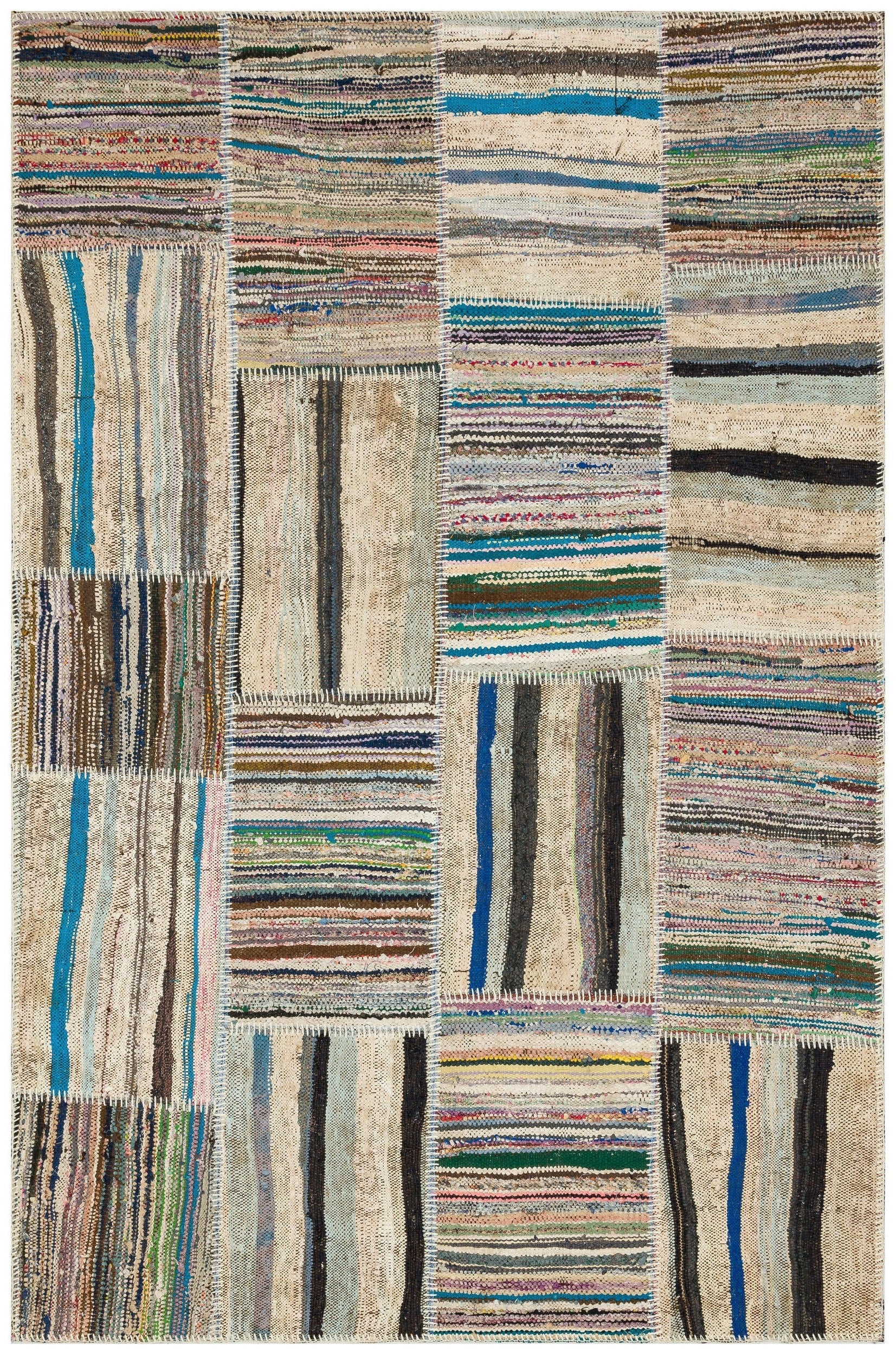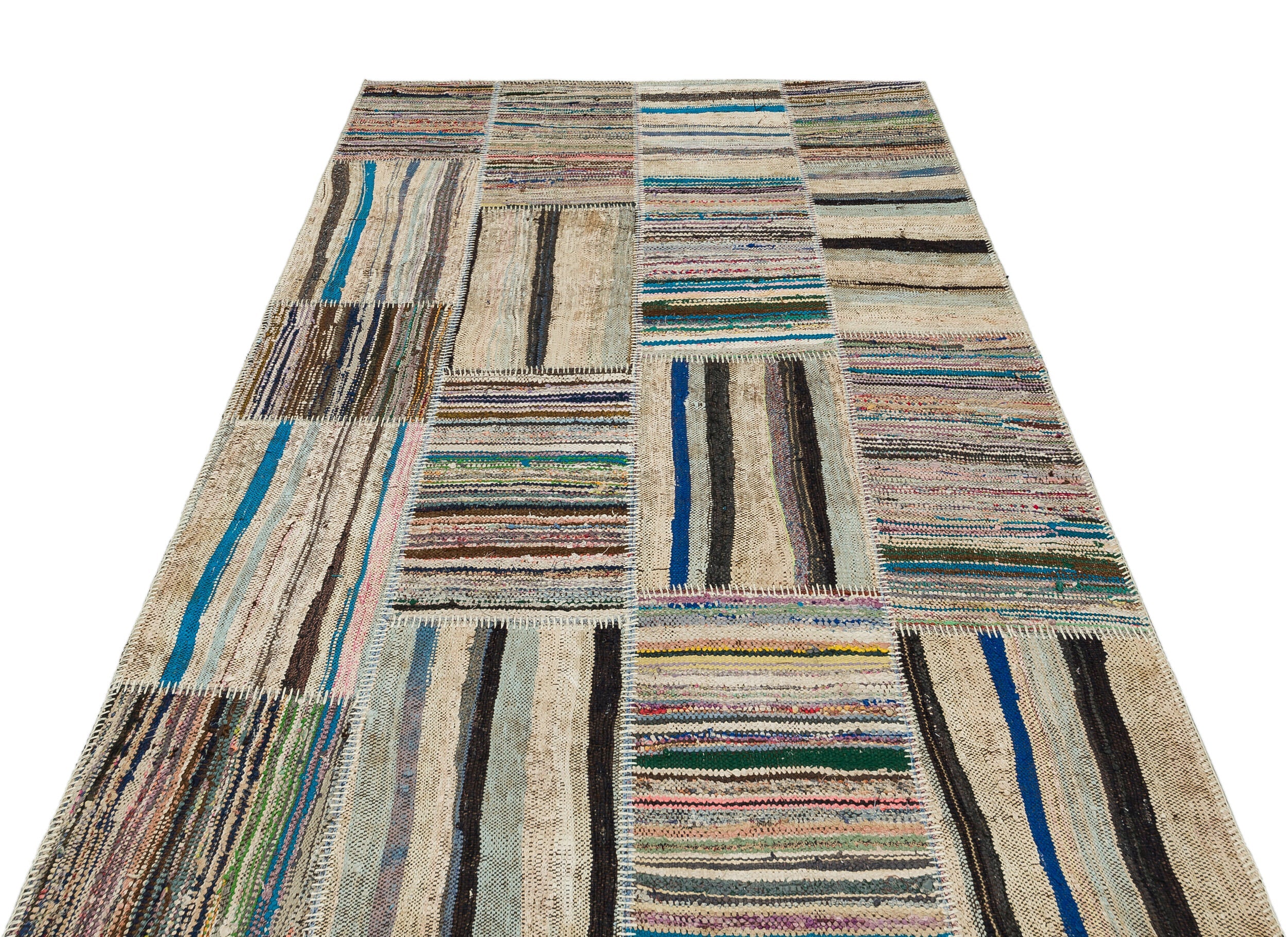 Teselya Beige Striped Wool Handmade Area Rug 4'11" x 7'7"