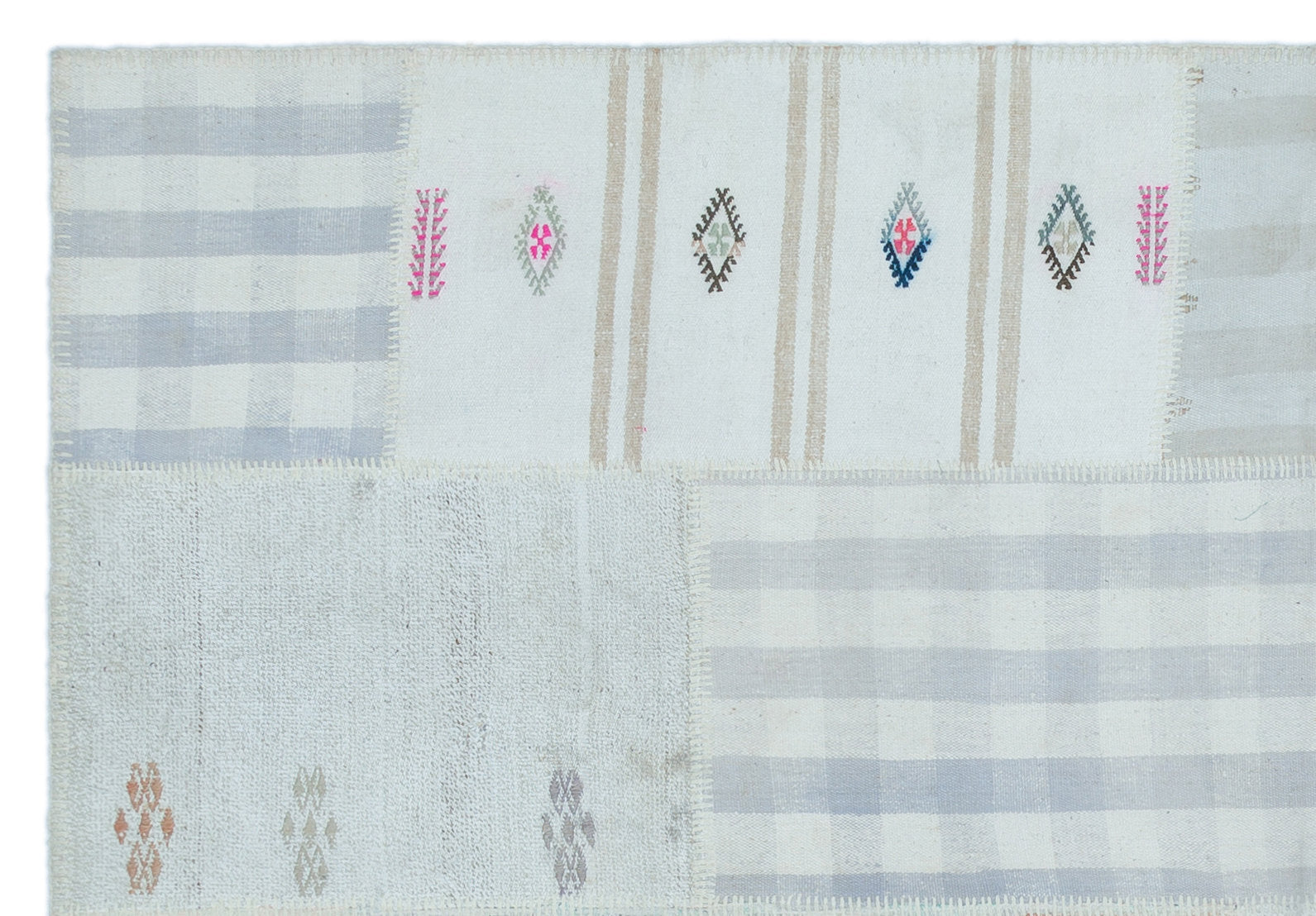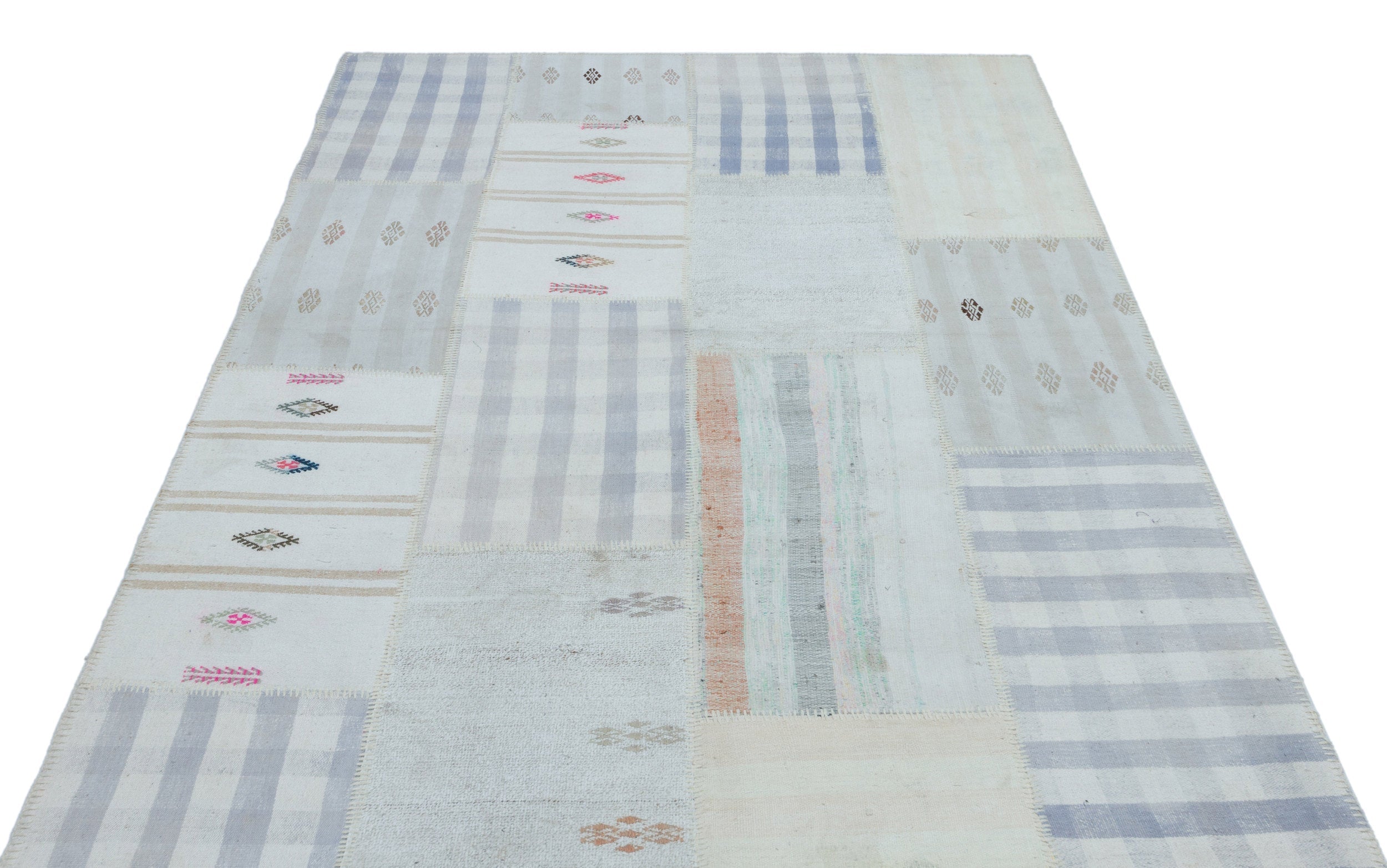 Teselya Beige Striped Wool Handmade Area Rug 5'1" x 7'5"