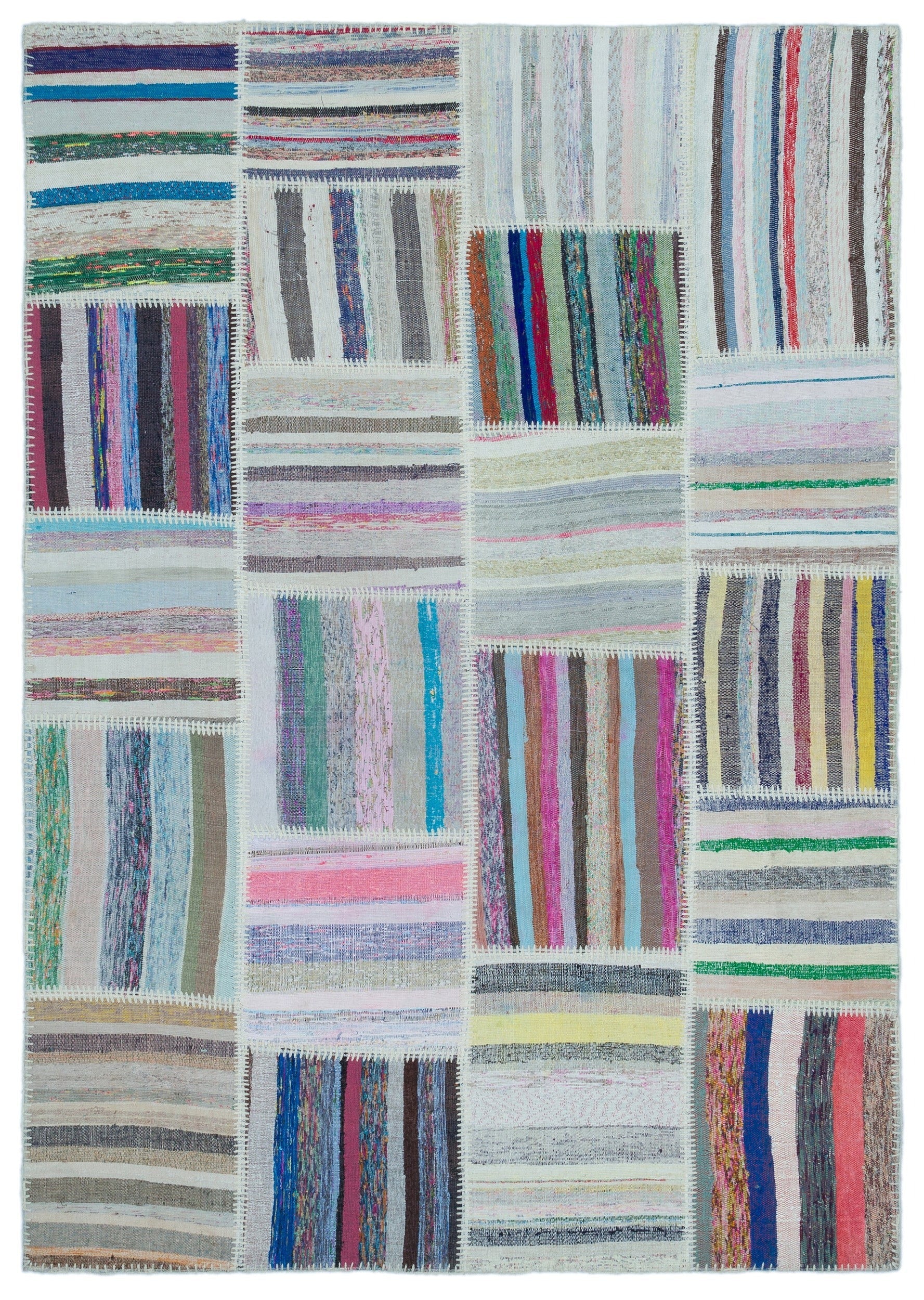 Teselya Beige Striped Wool Handmade Area Rug 5'3" x 7'5"