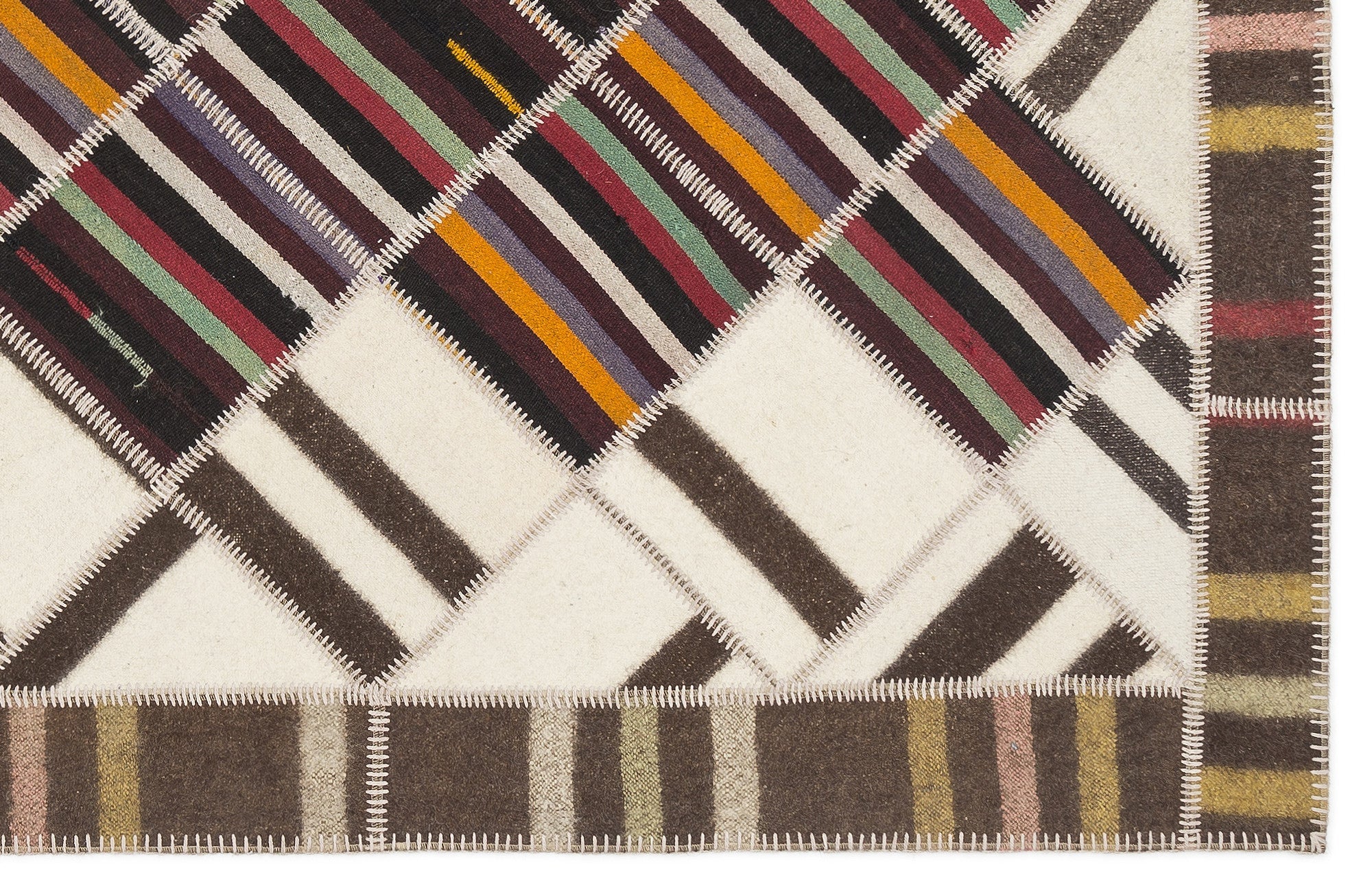 Teselya Beige Striped Wool Handmade Area Rug 5'6" x 7'8"
