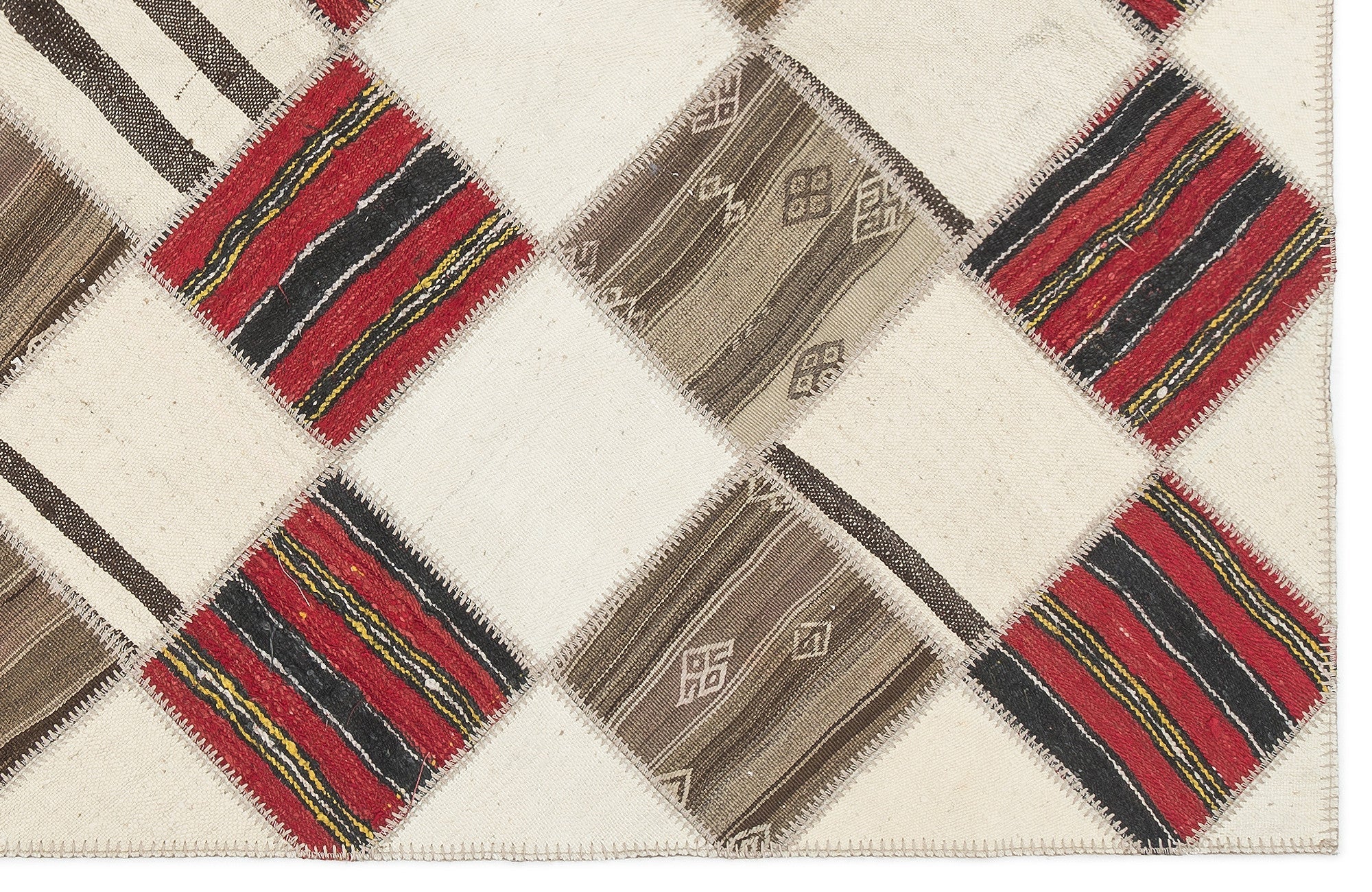 Teselya Beige Striped Wool Handmade Area Rug 5'9" x 7'1"