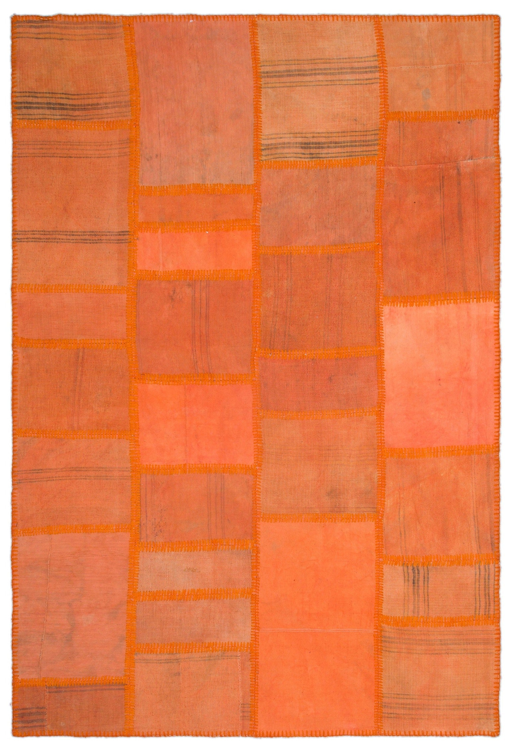 Teselya Orange Patchwork Wool Handmade Area Rug 5'2" x 7'7"